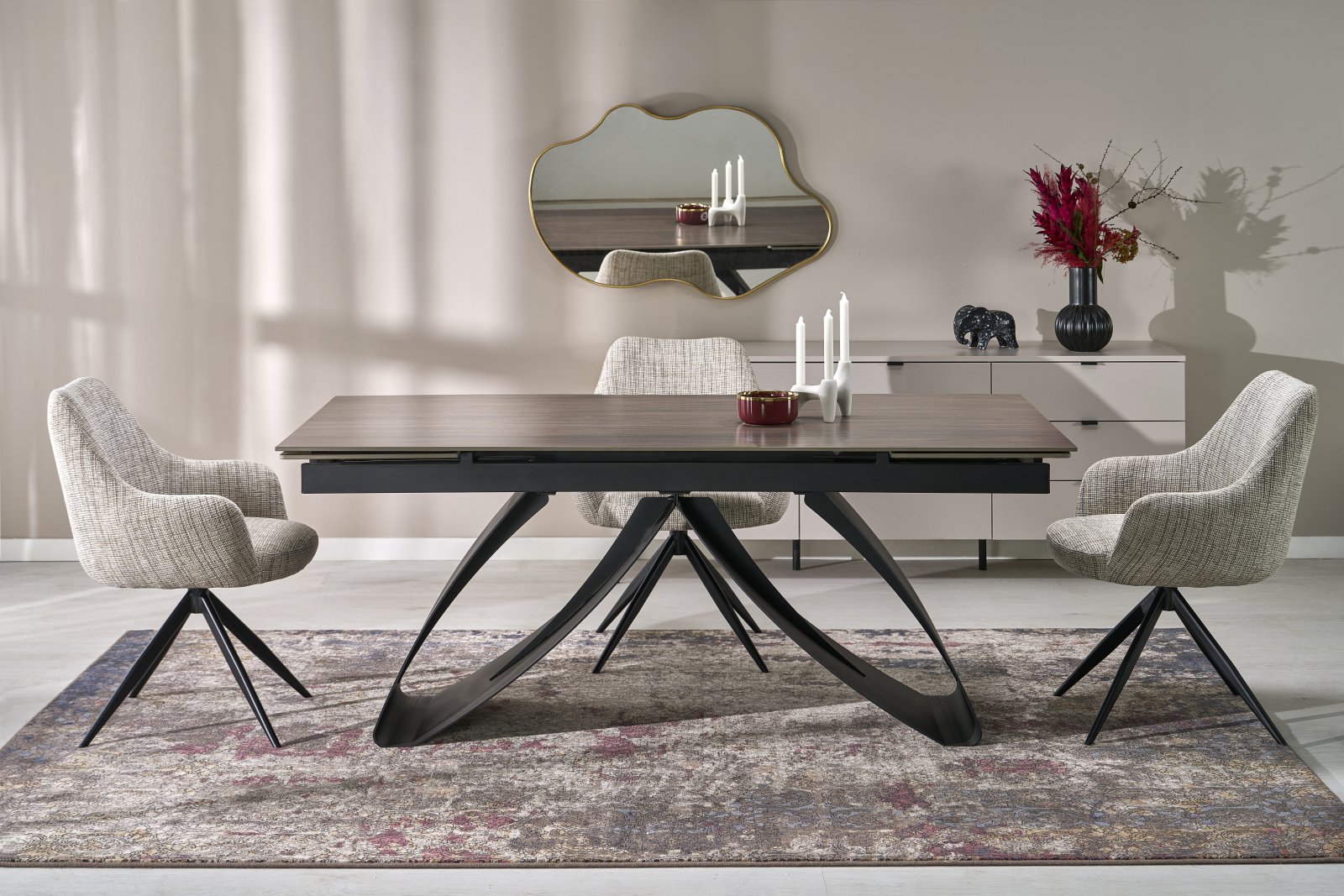 размеры: 180-260/90/75/125 см; столик-раздвижной, материал: спеченный камень/сталь с порошковым покрытием, цвет: столешница – орех, ножки – черный
