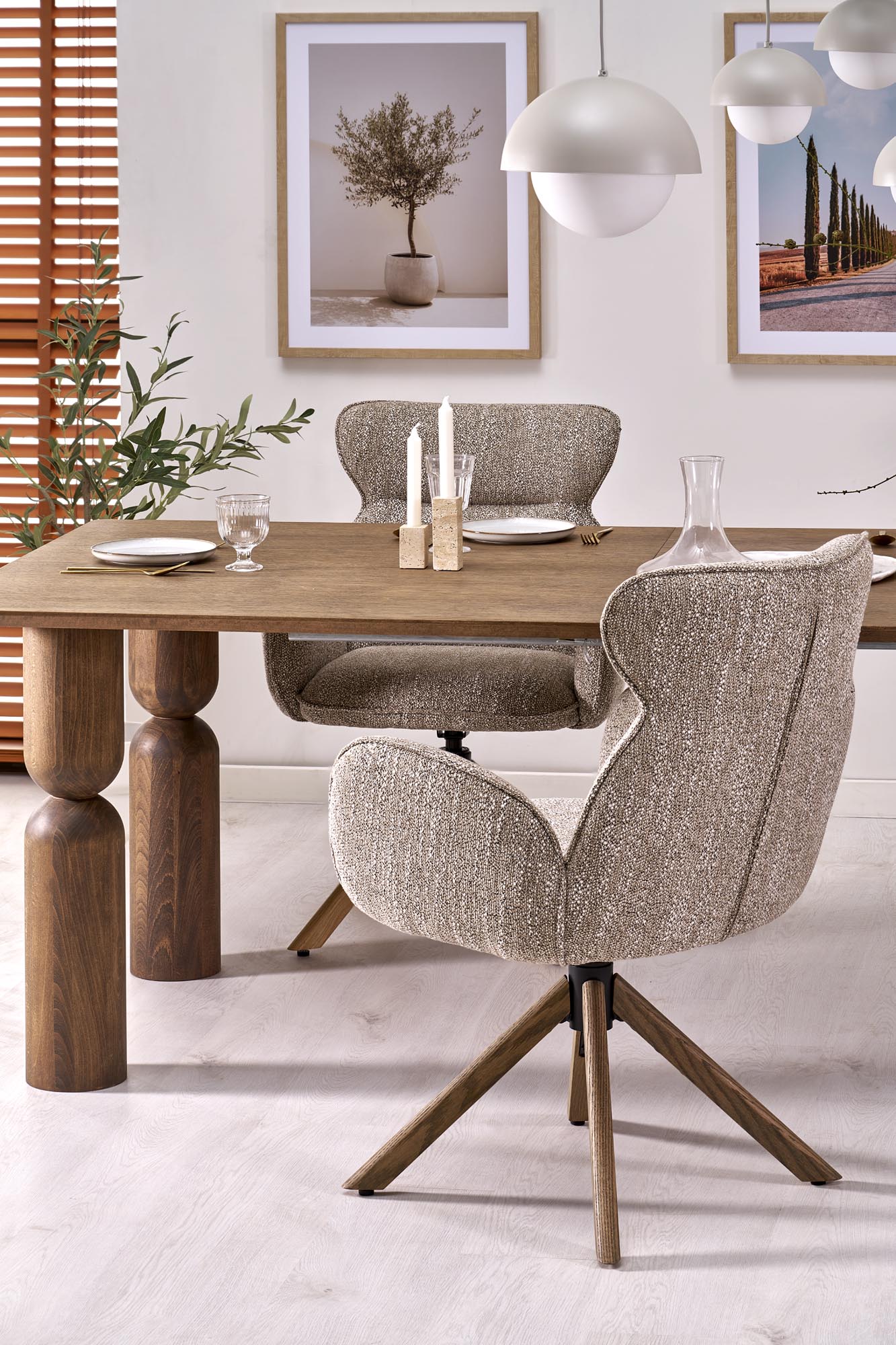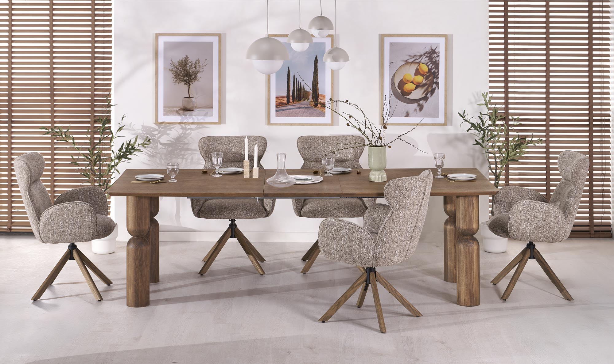 столик-раздвижной, размеры: 200-300/101/76 см, материал: МДФ + натуральный шпон (дуб)/массив бука, цвет: столешница – светлый орех, ножки – светлый орех
