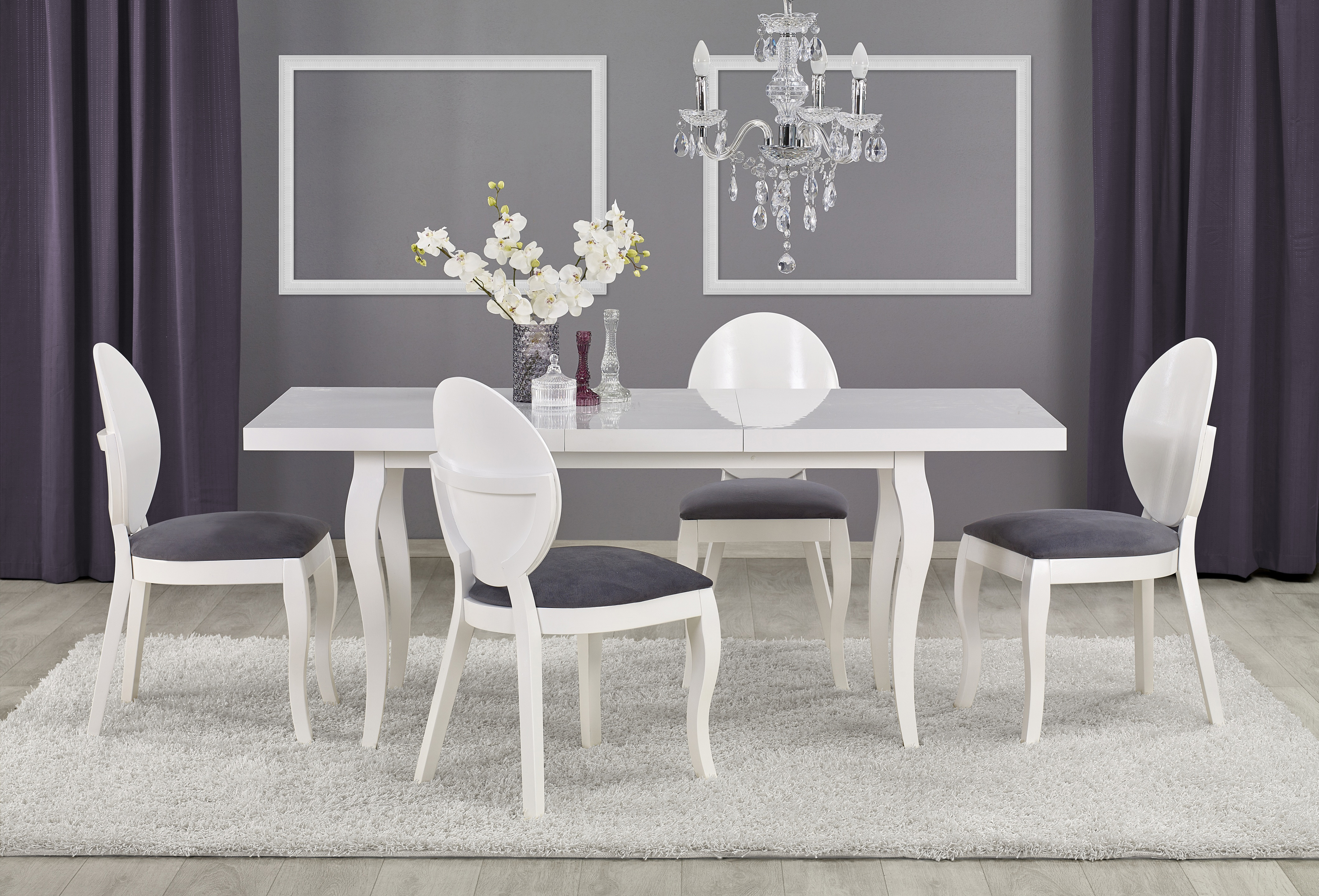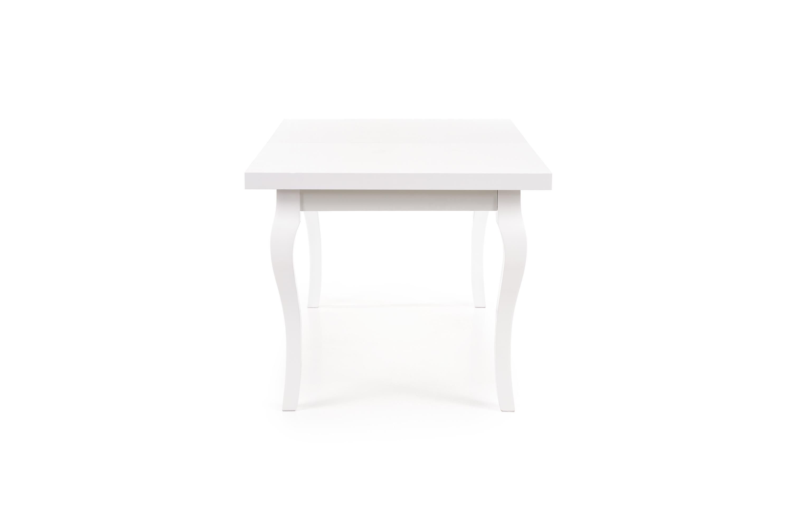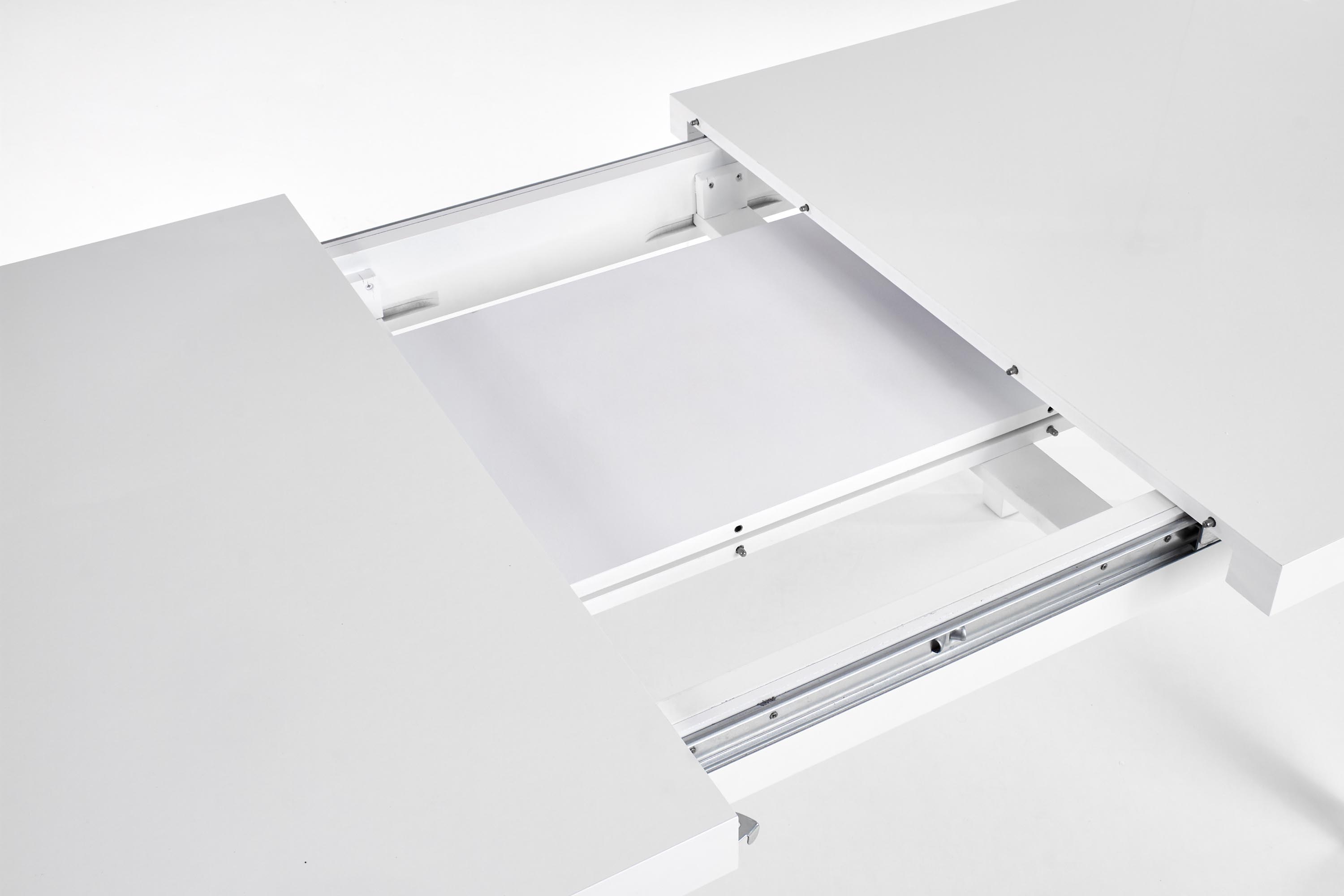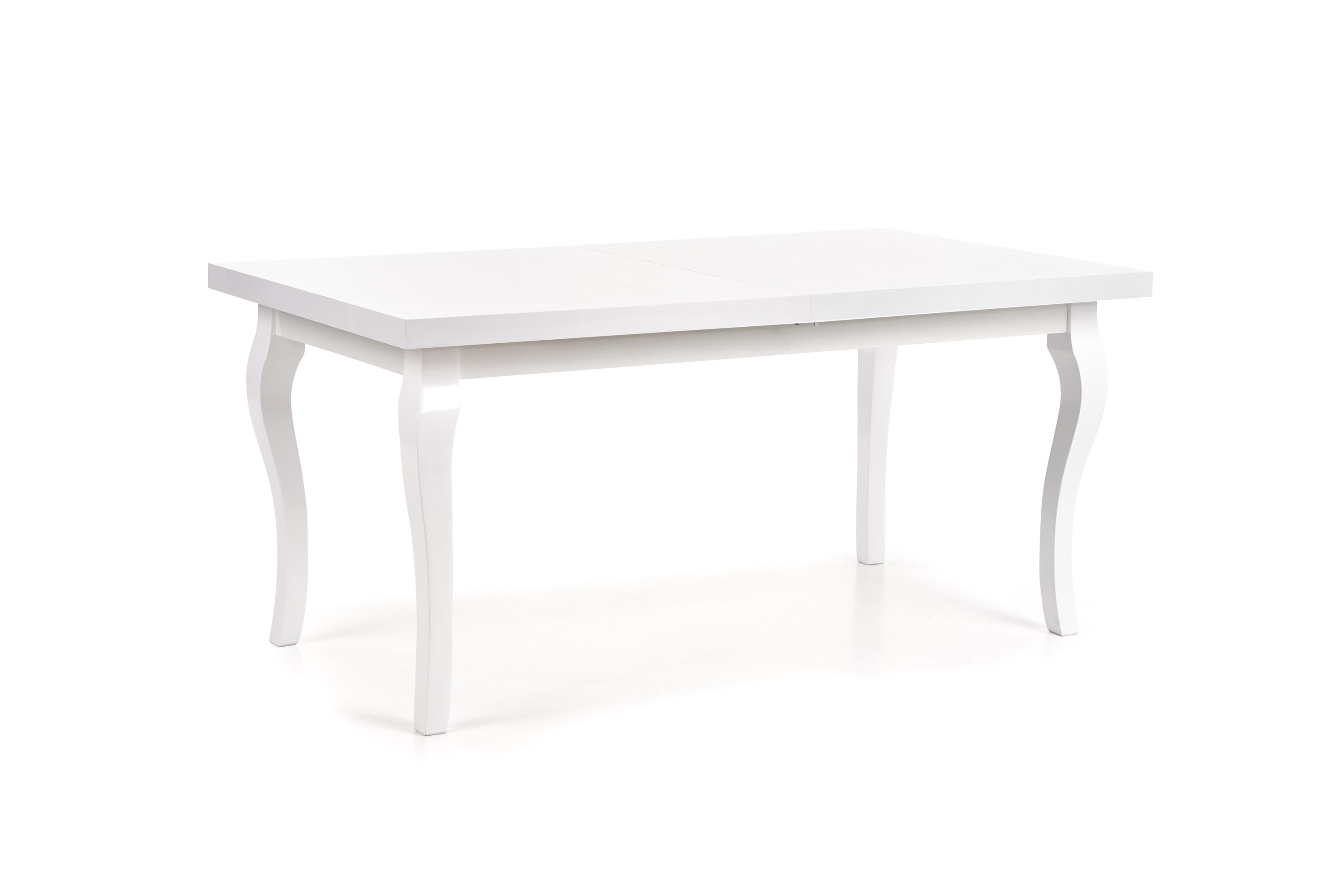 столик-раздвижной, размеры: 160-240/90/75 см, материал: столешница — ламинированный МДФ + кромки АБС, ножки — массив бука, цвет: белый