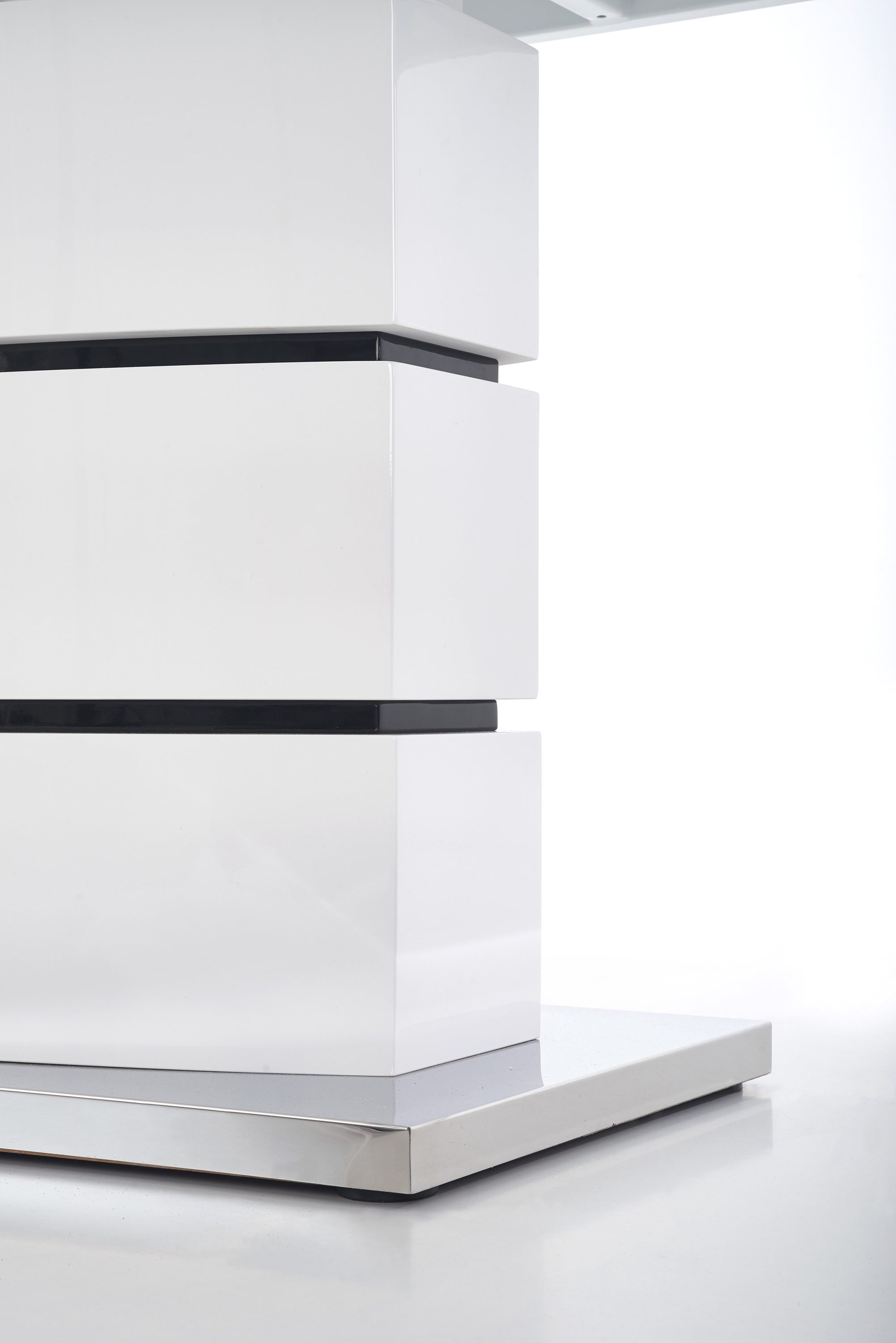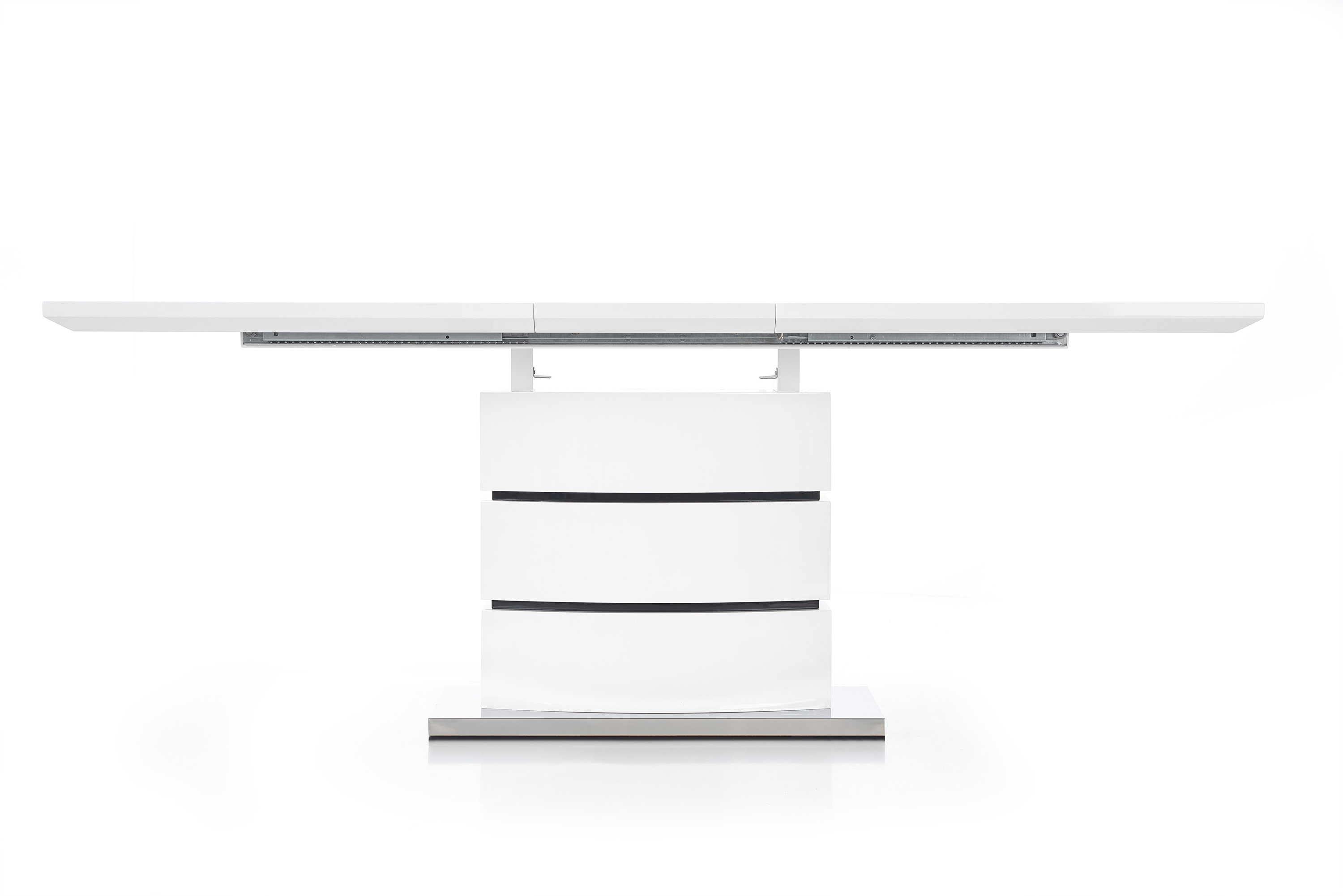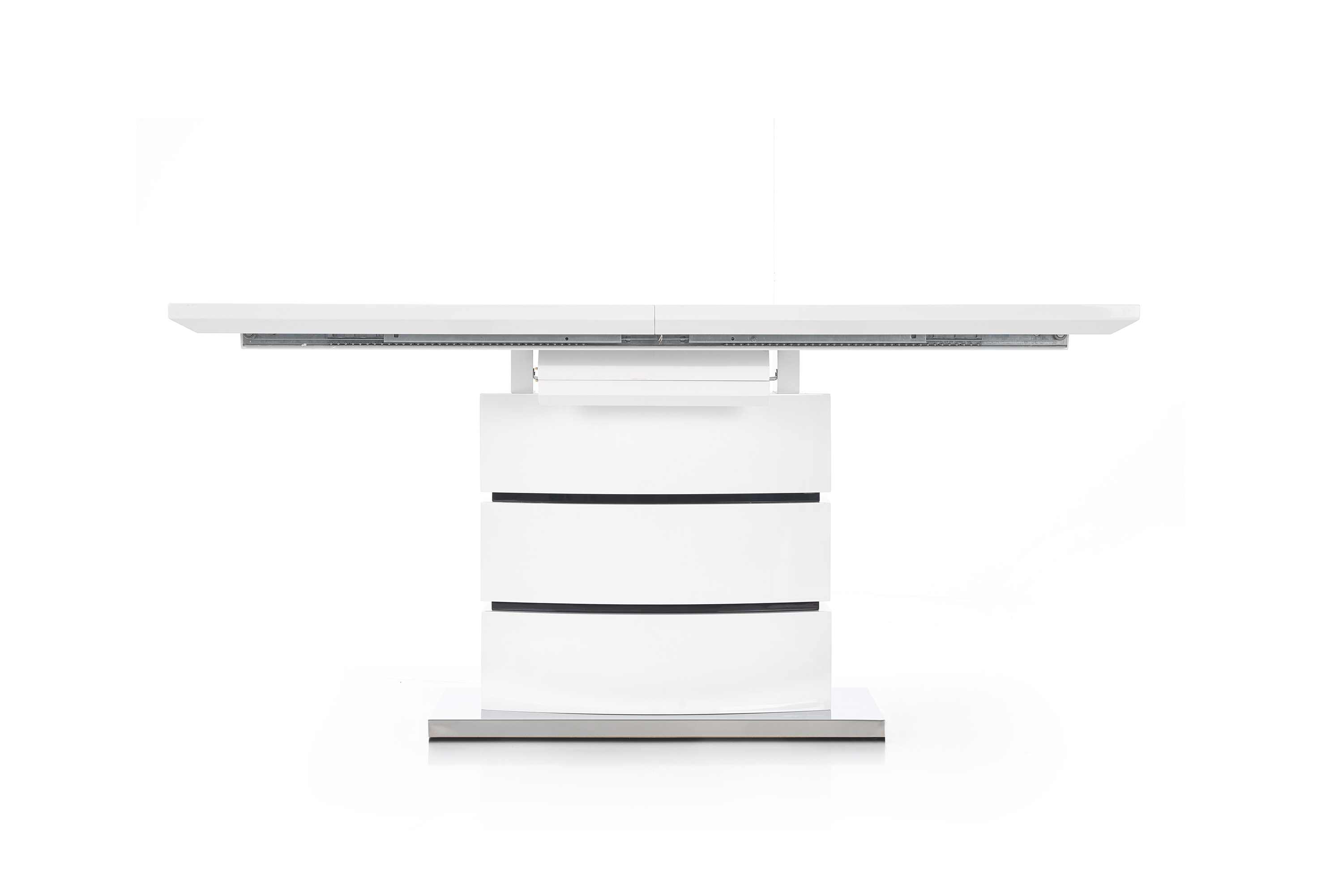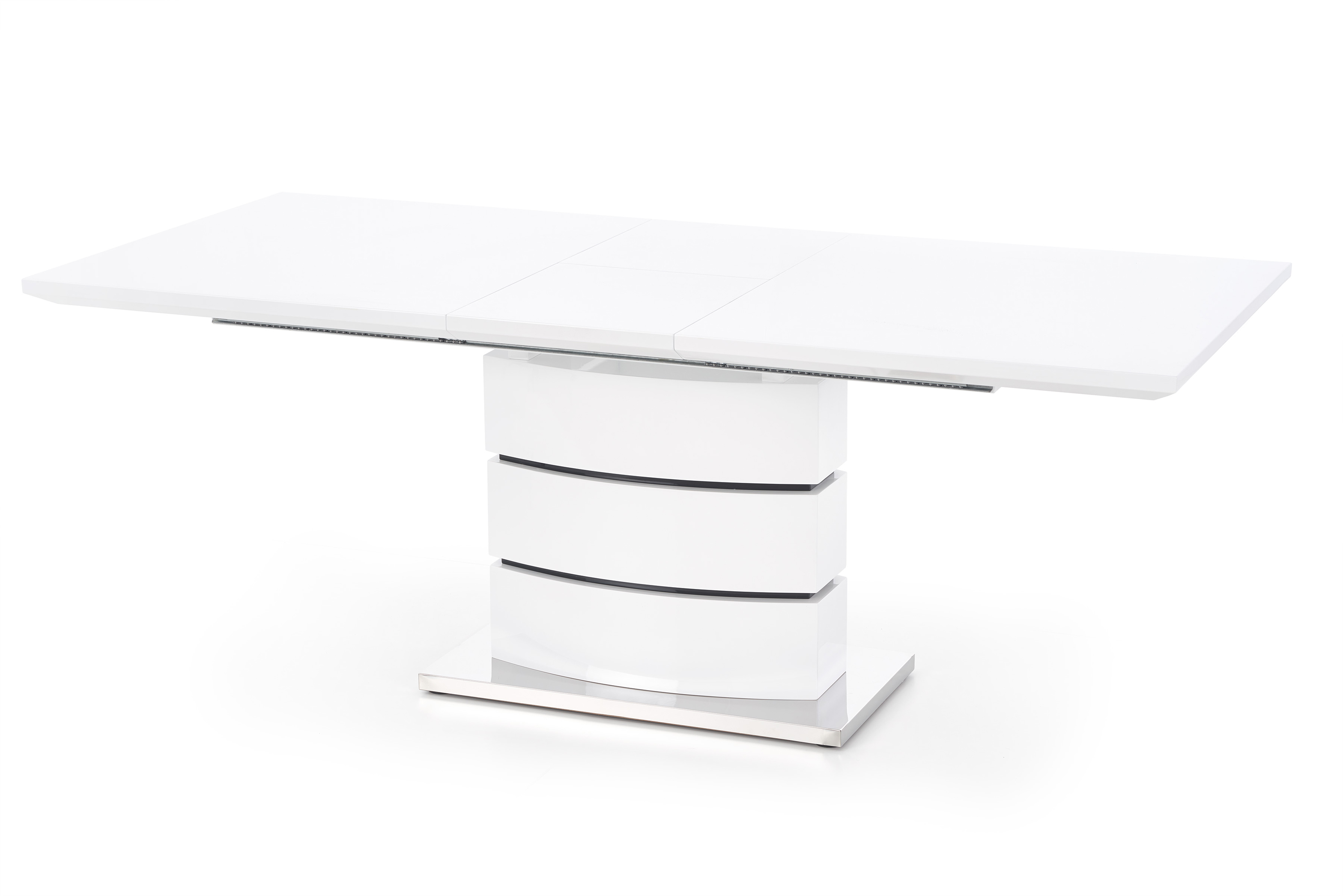раздвижной стол, размеры: 160÷200/90/75 см, материал: лакированный МДФ/нержавеющая сталь, цвет: белый с черными полосками