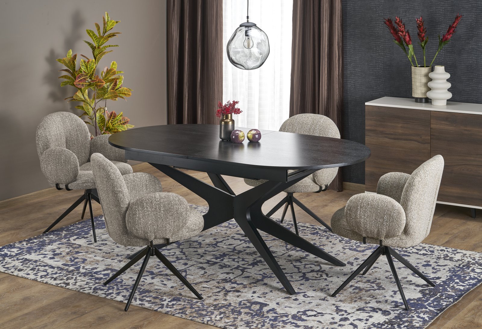 размеры: 180-240/100/76 см, столик-раздвижной, материал: ламинированный МДФ — меламин/сталь с порошковой покраской, цвет: столешница — черный, ножки — черный