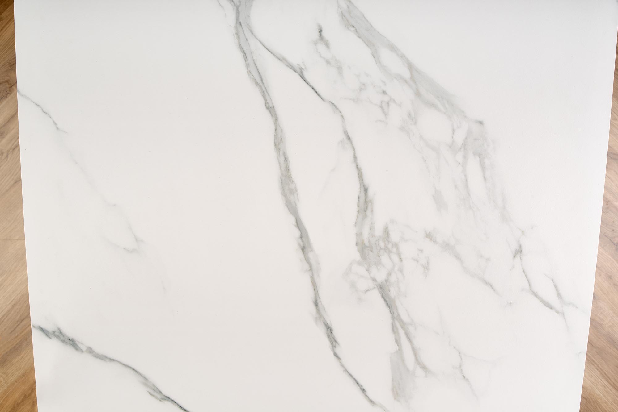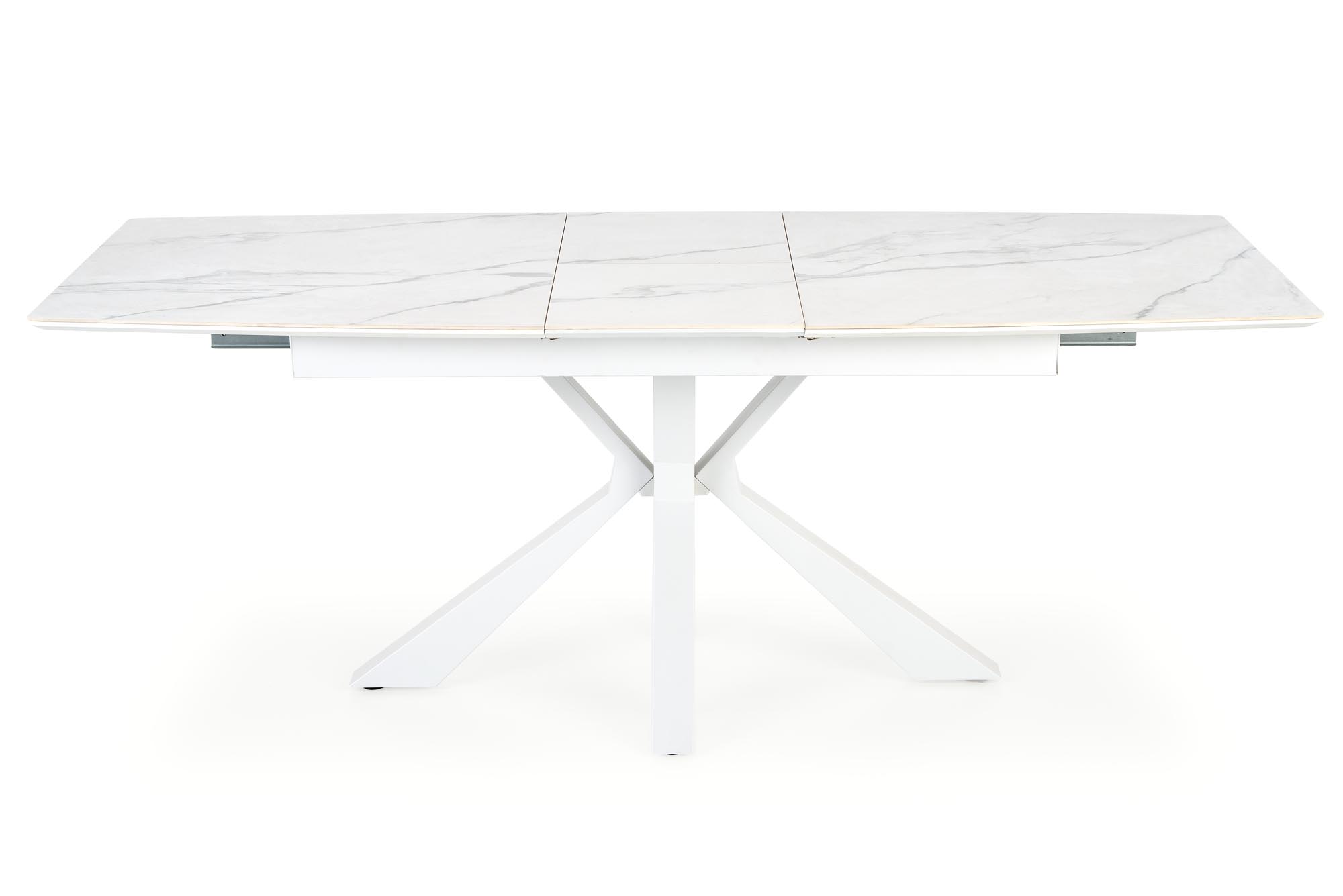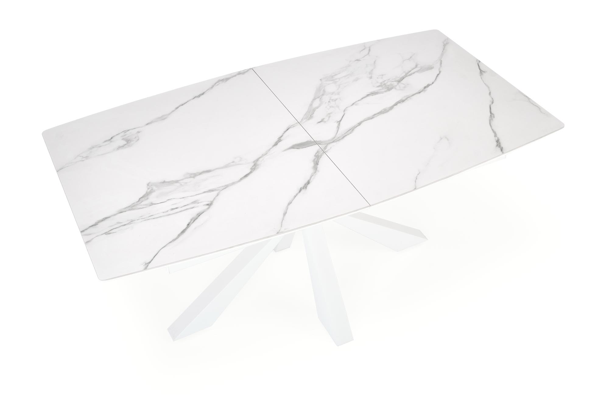 размеры: 160-200/89/78 см, материал: спеченный камень/лакированный МДФ/сталь с порошковой покраской, цвет: столешница – белый мрамор, ножки – белые