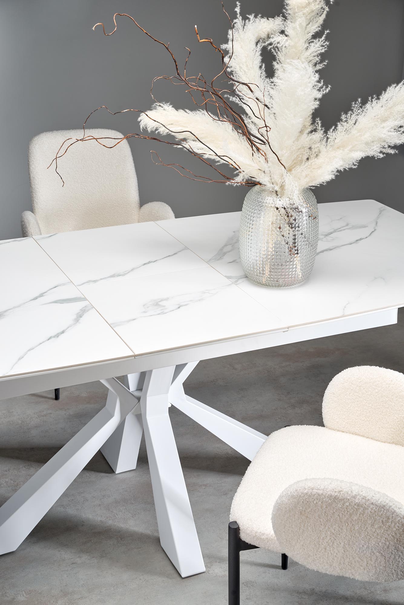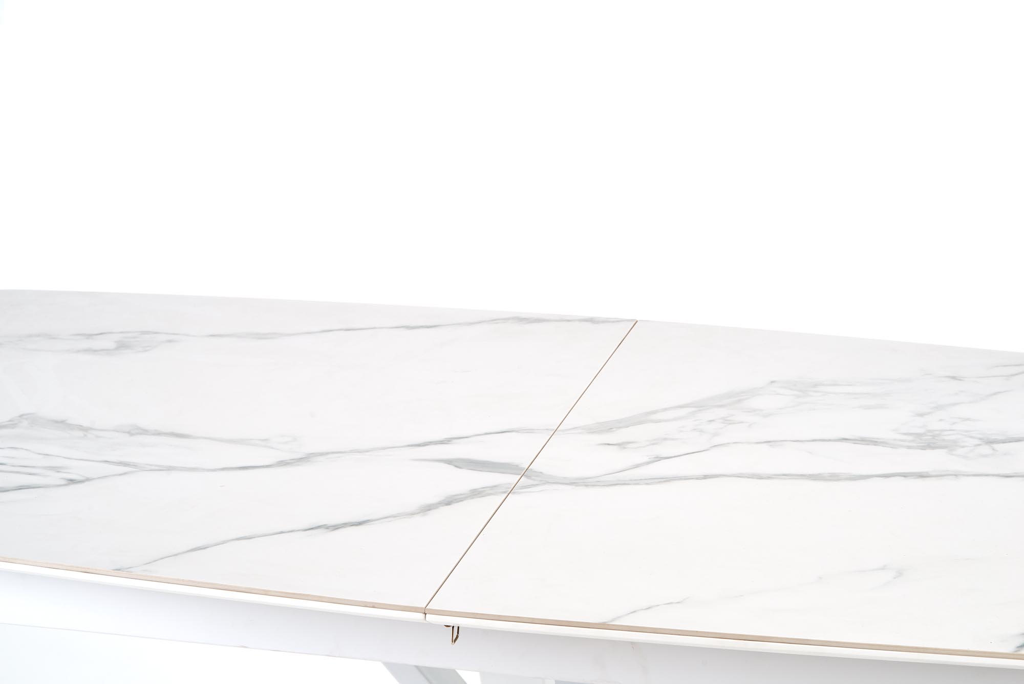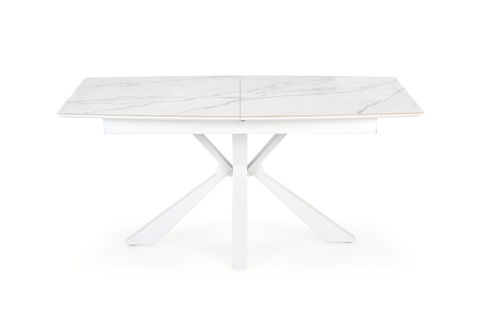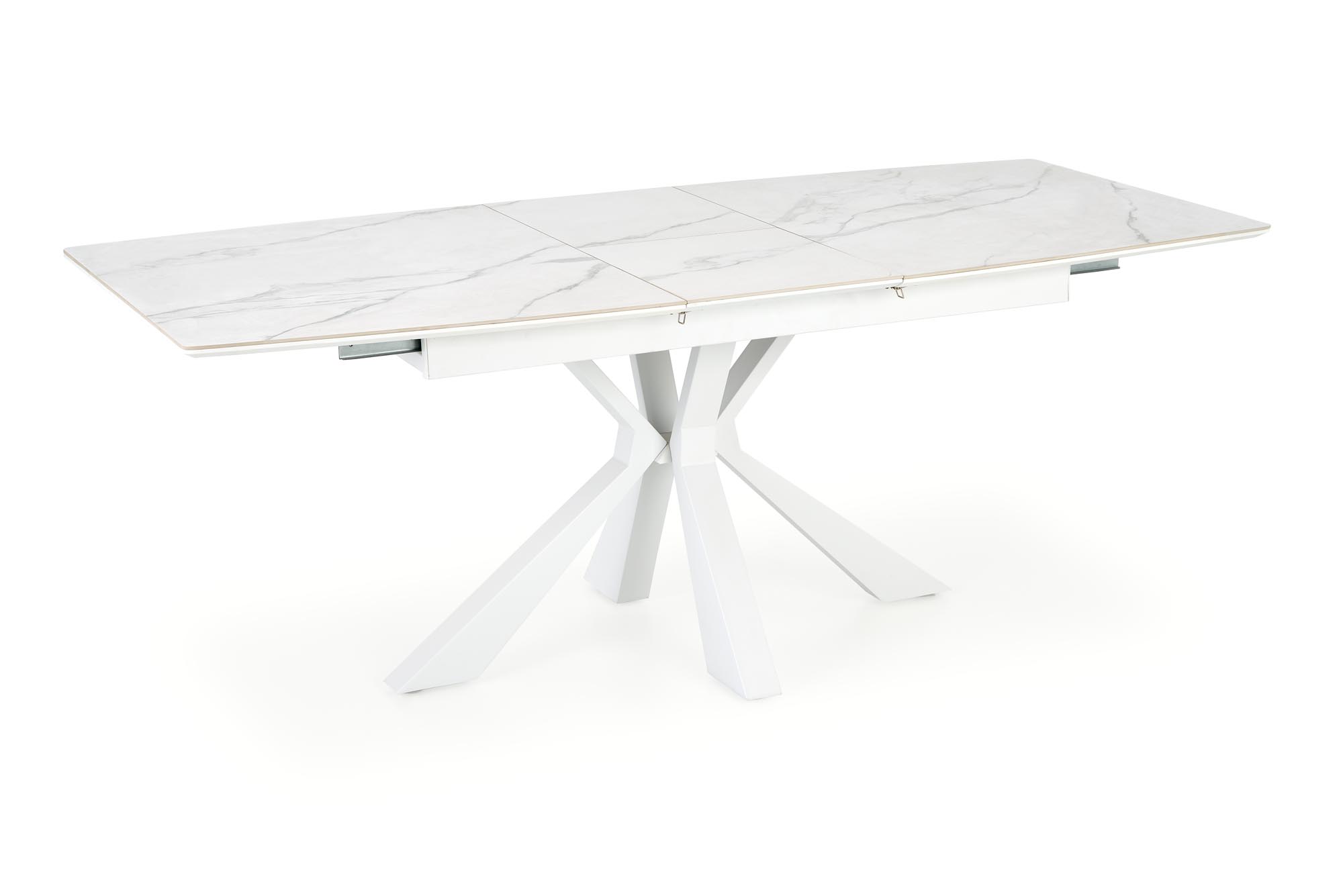 размеры: 160-200/89/78 см, материал: спеченный камень/лакированный МДФ/сталь с порошковой покраской, цвет: столешница – белый мрамор, ножки – белые
