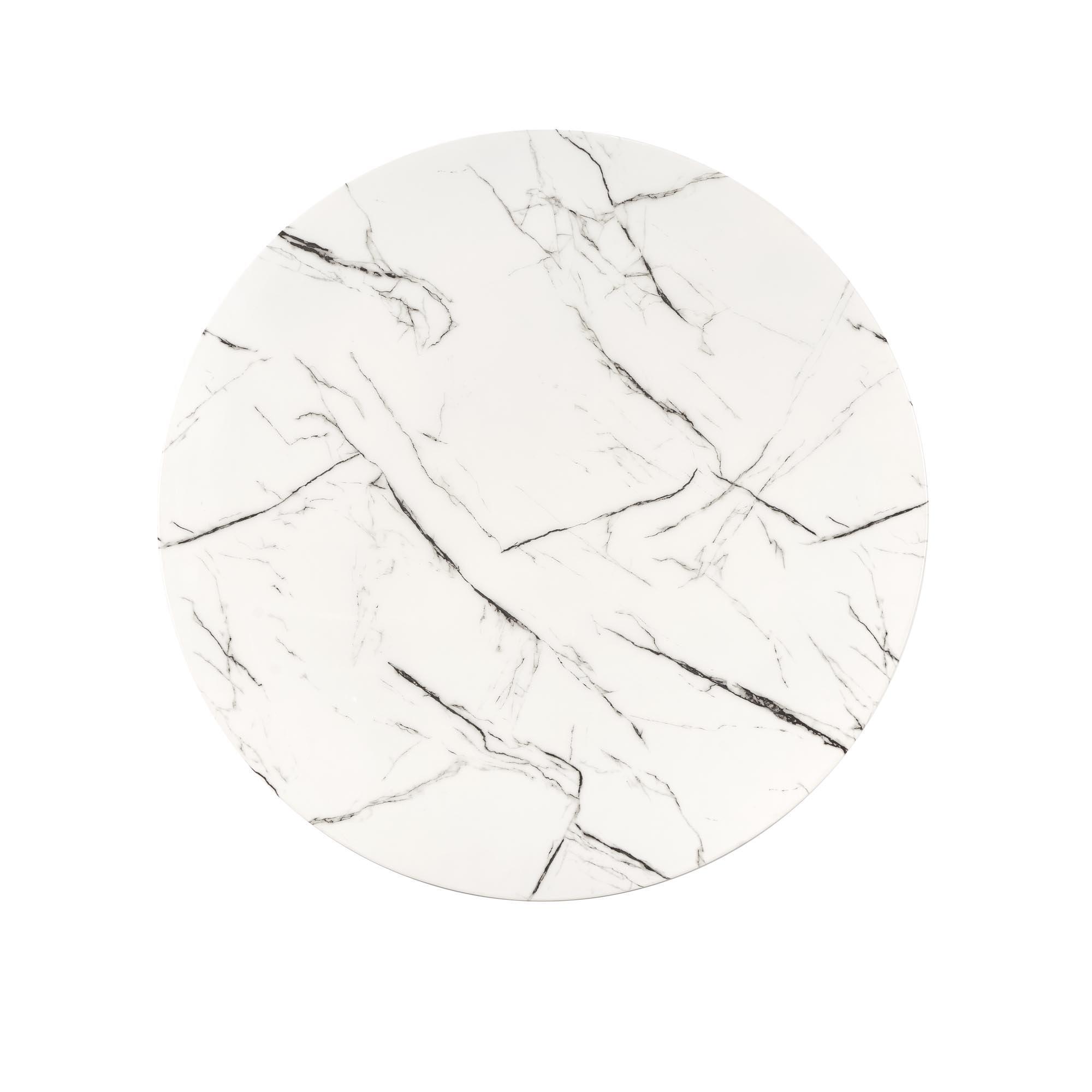 размеры: фи100/73 см, материал: стекло/хромированная сталь, цвет: столешница – белый мрамор, ножки – золото.