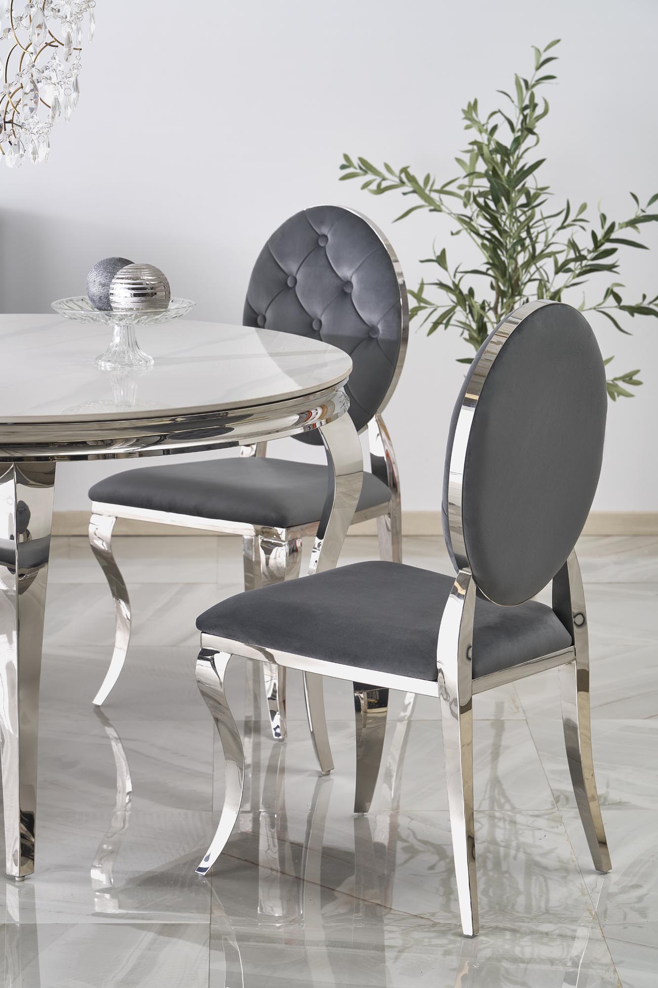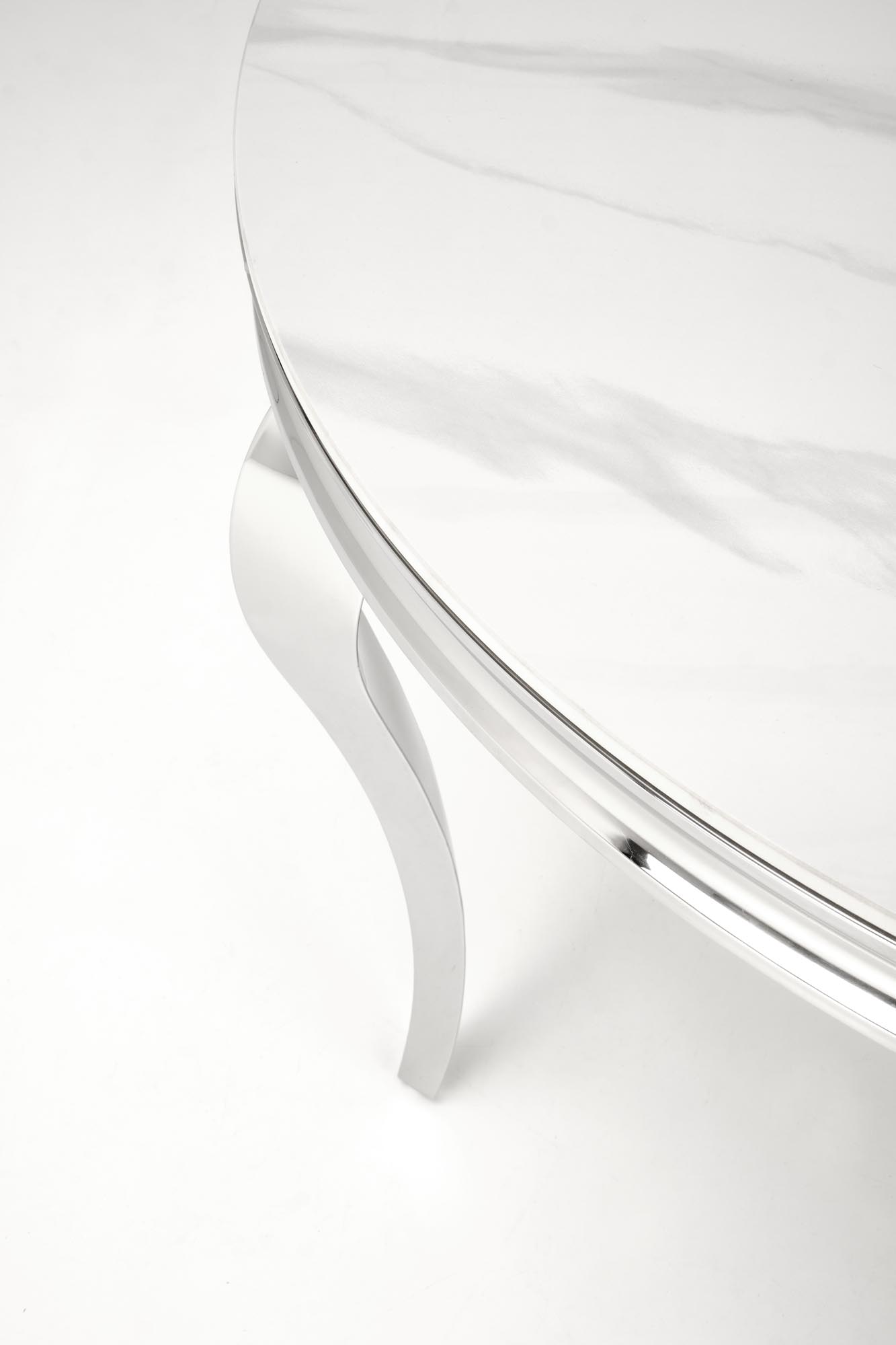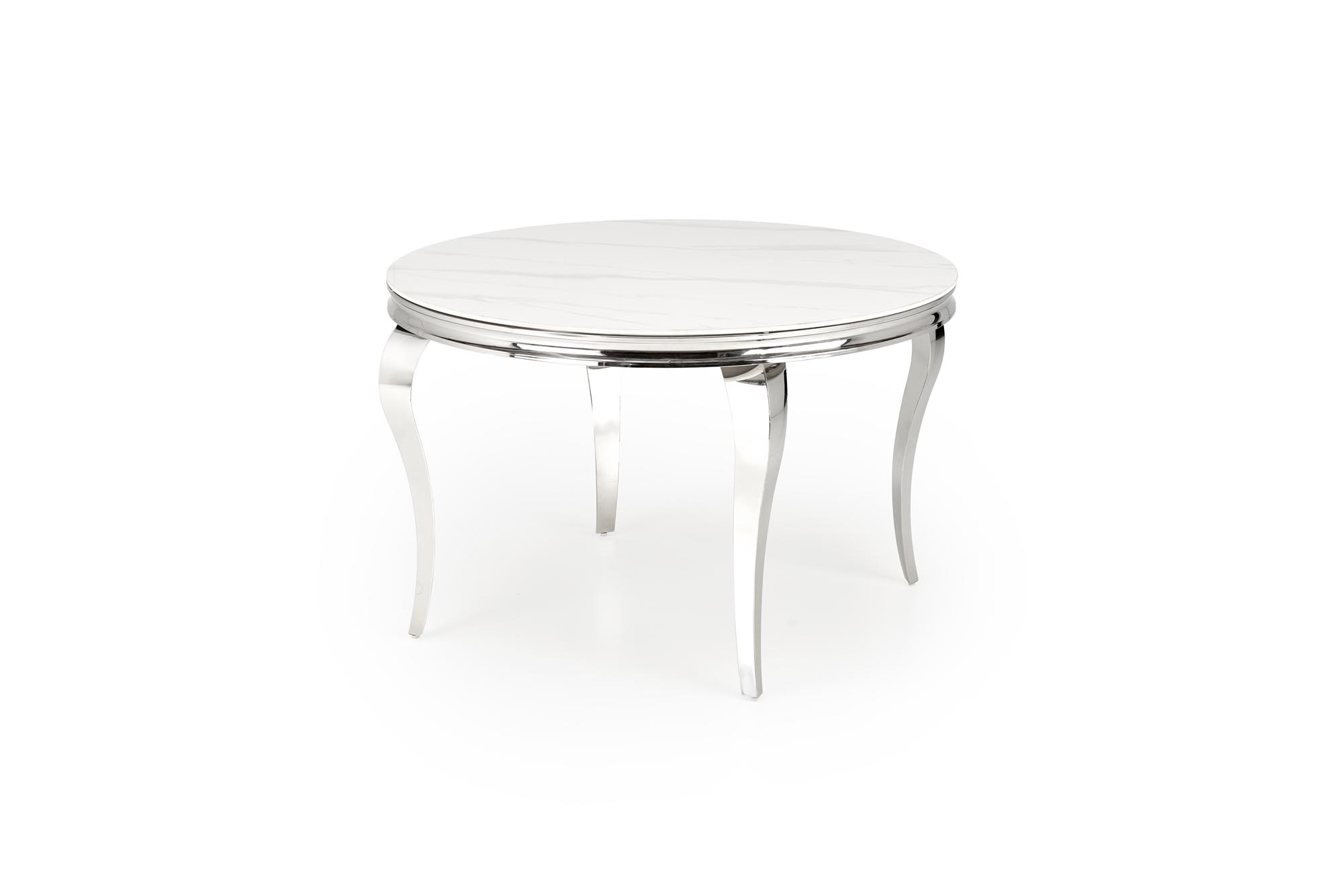 размеры: 120/76/77 см; материал: спеченный камень/нержавеющая сталь, цвет: столешница – белый мрамор, ножки – серебро.