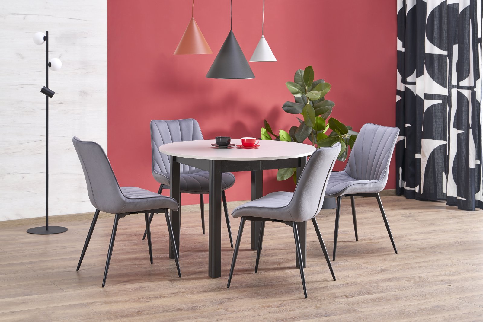 столик-раздвижной, размеры: 102-142/102/76 см, материал: ЛДСП/ламинированный МДФ, цвет: столешница – кашемир, ножки – черный