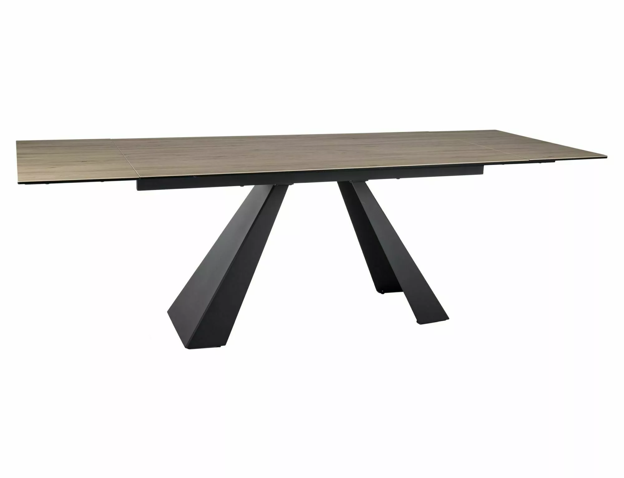 Стол раздвижной, столешница: закаленное стекло + керамика SABBIA, каркас: металл, цвет: светло-коричневый матовый/черный матовый.