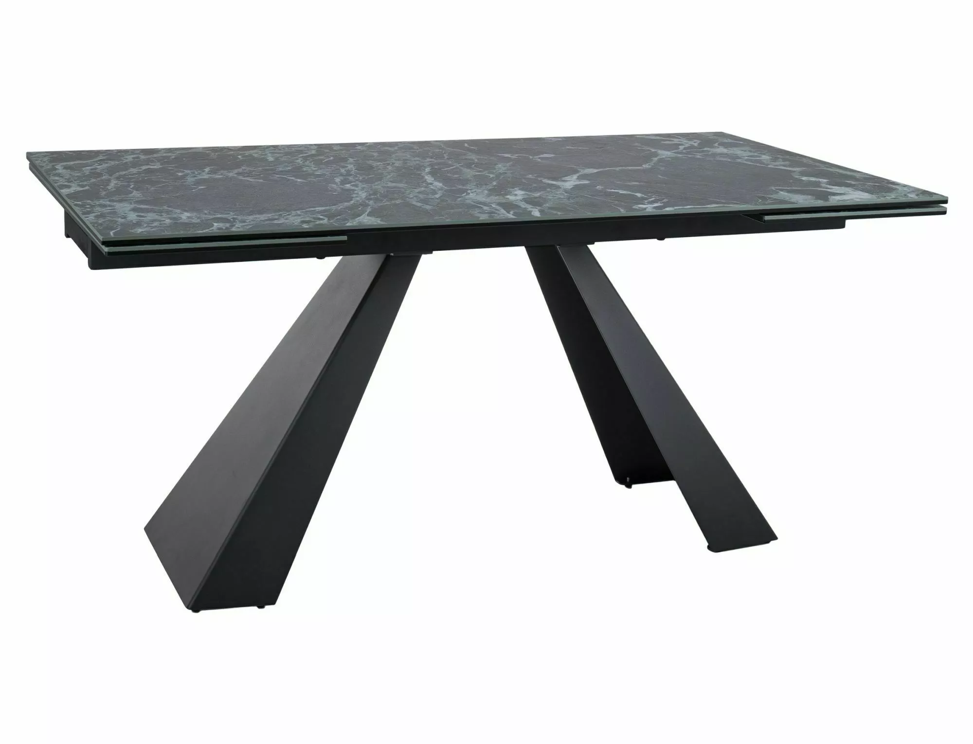 Стол раздвижной, столешница: закаленное стекло + керамика VERDE ALPI, каркас: металл, цвет: матовый морской зеленый/матовый черный.