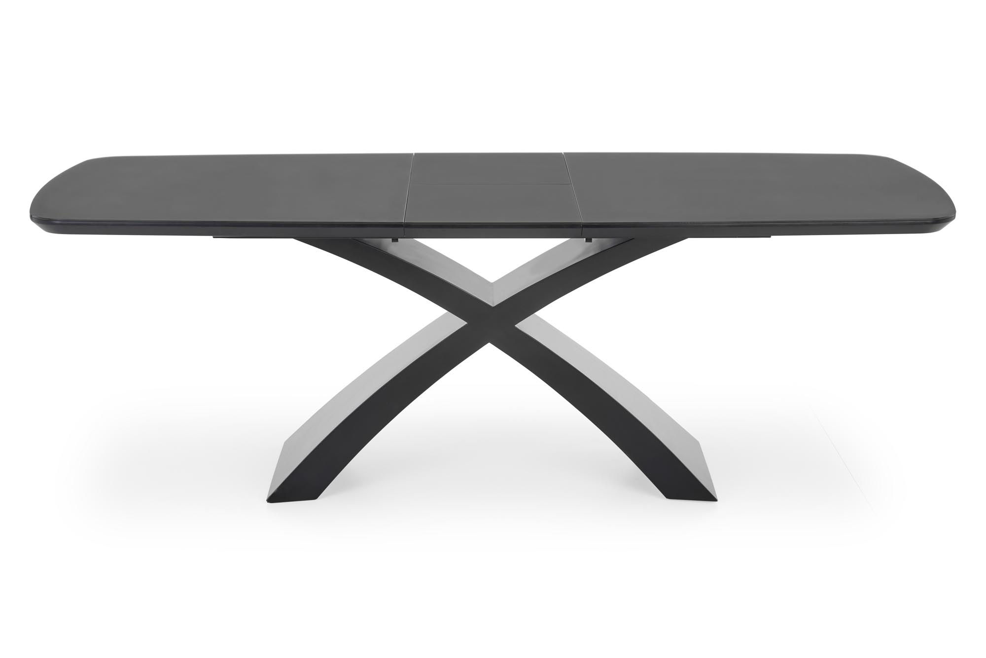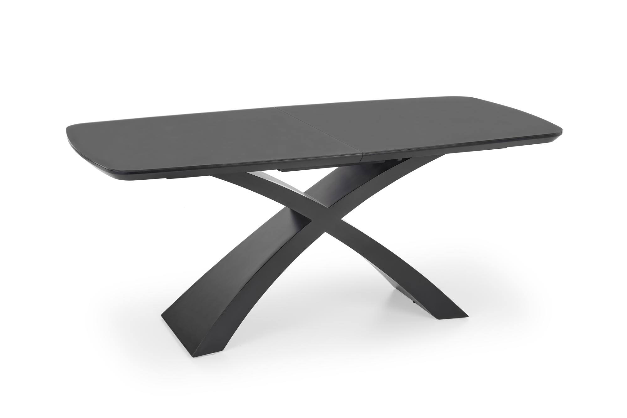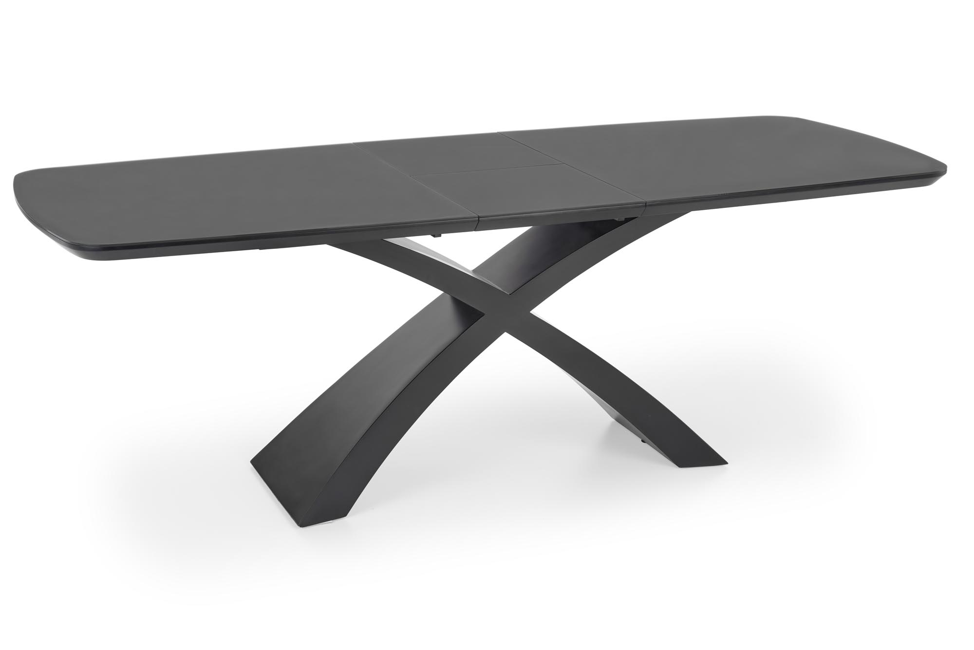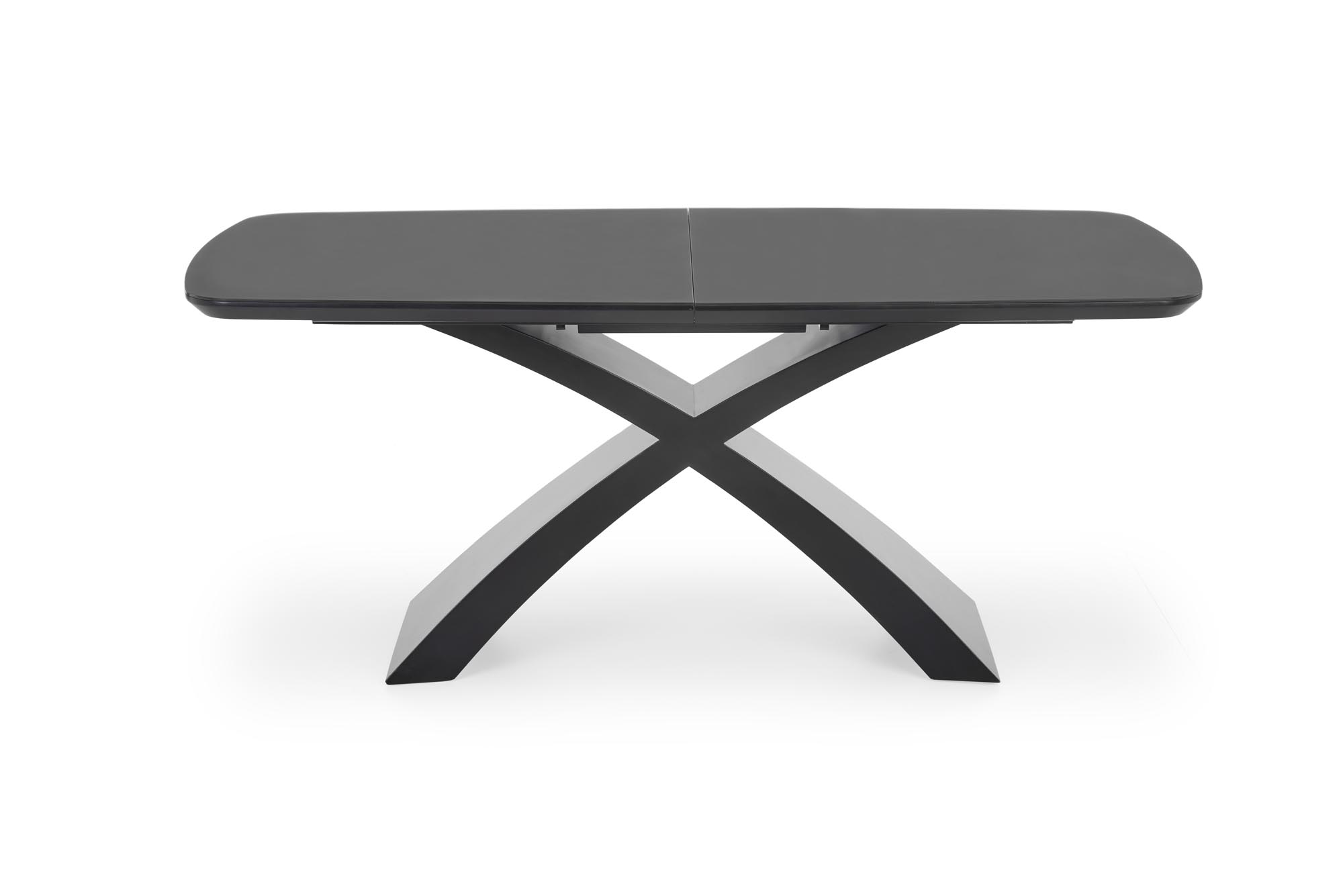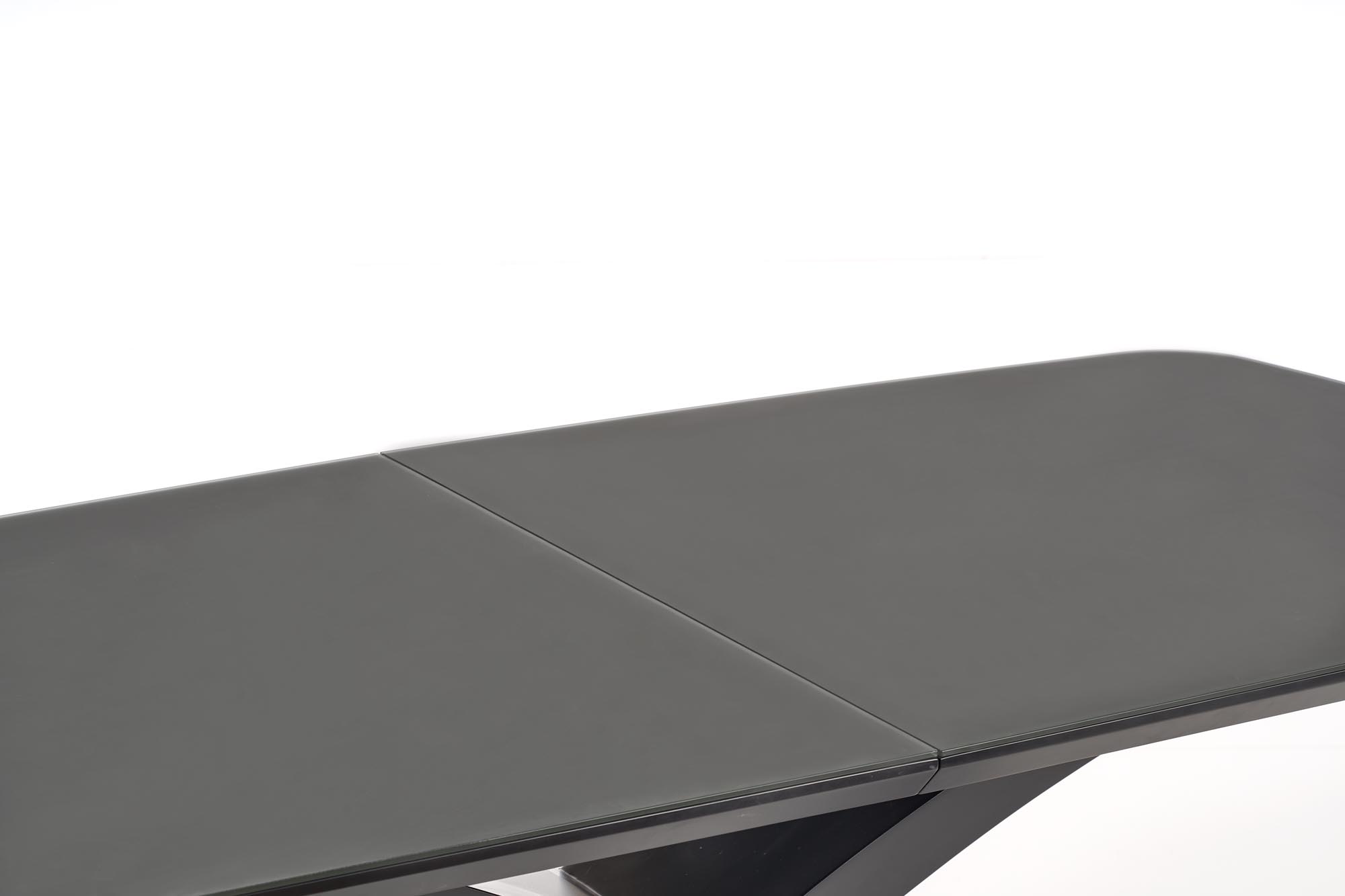 размеры: 180-220/89/75 см, столик-раздвижной, материал: стекло/лакированный МДФ, цвет: столешница — темно-серый, ножки — черный
