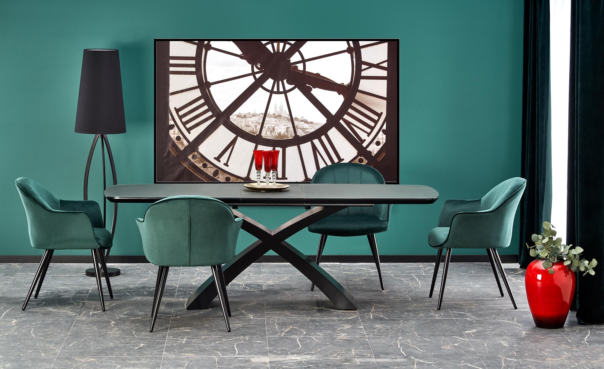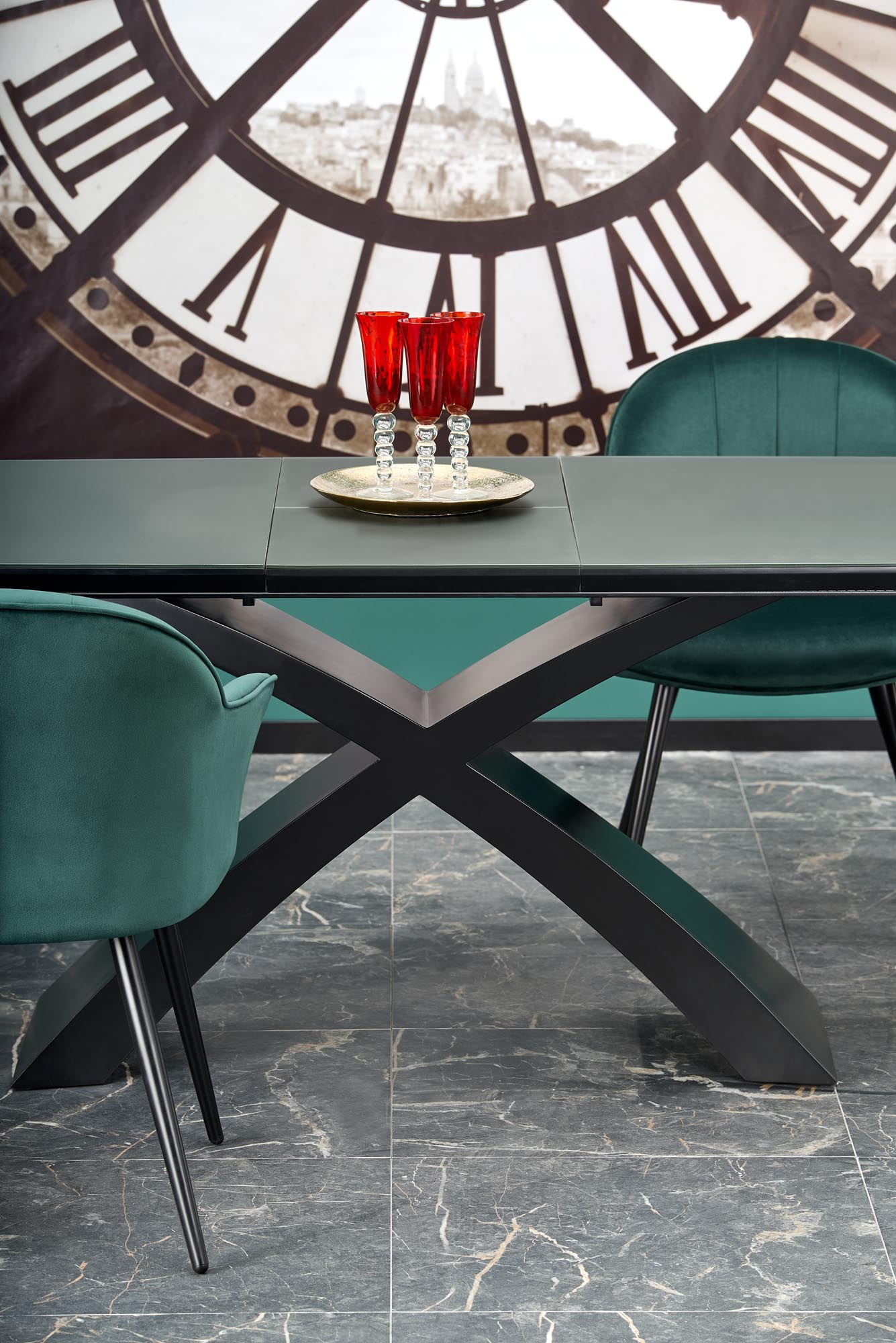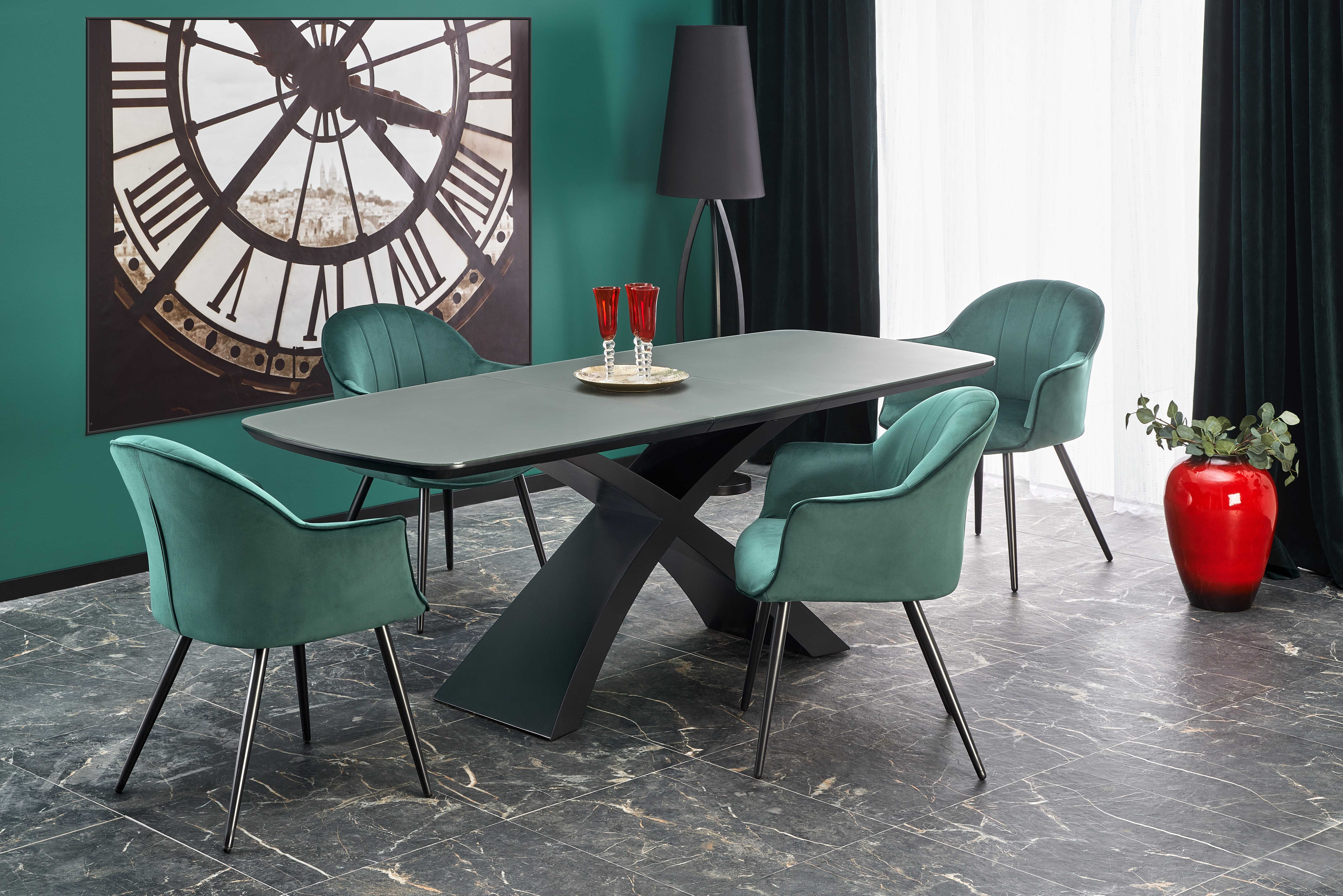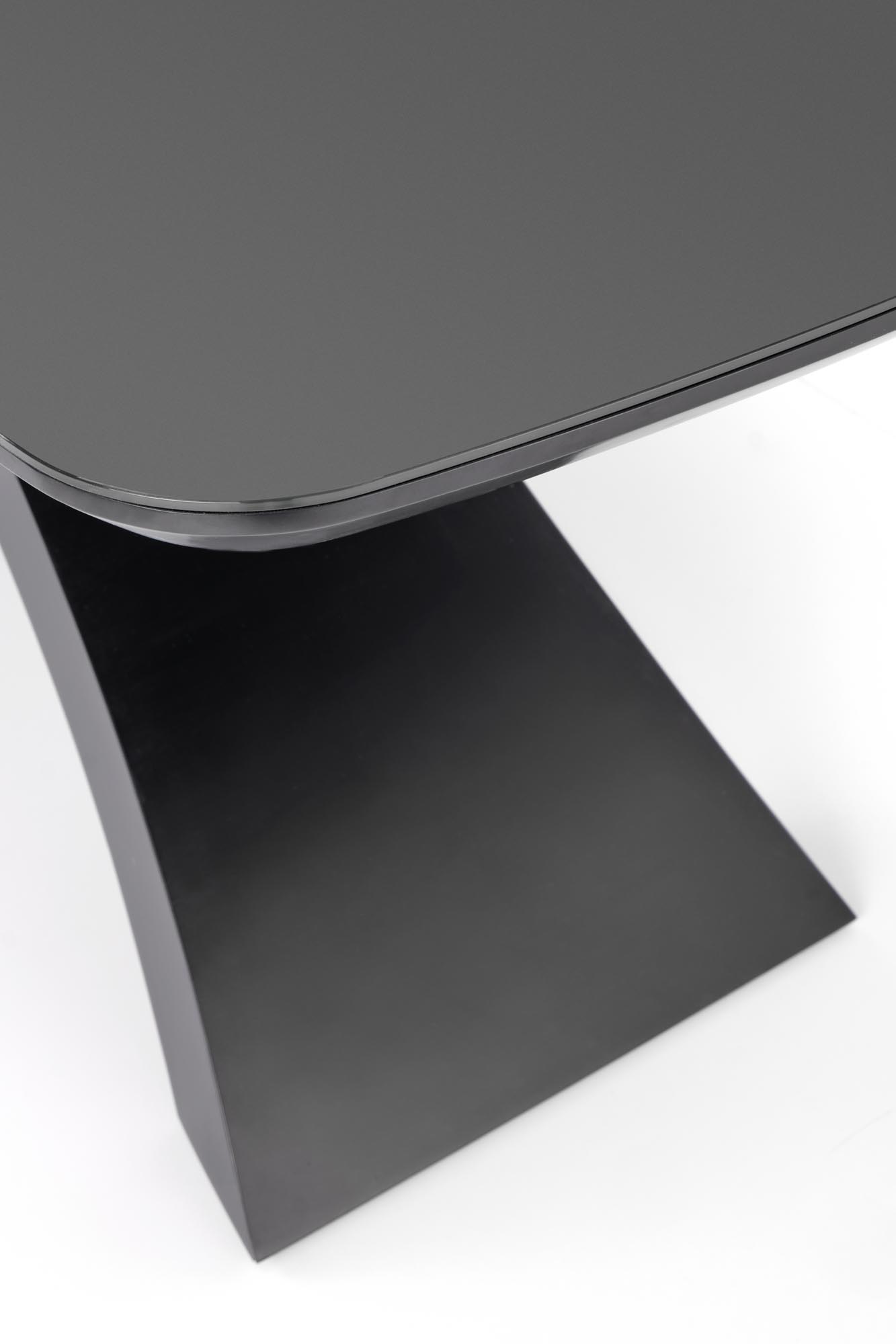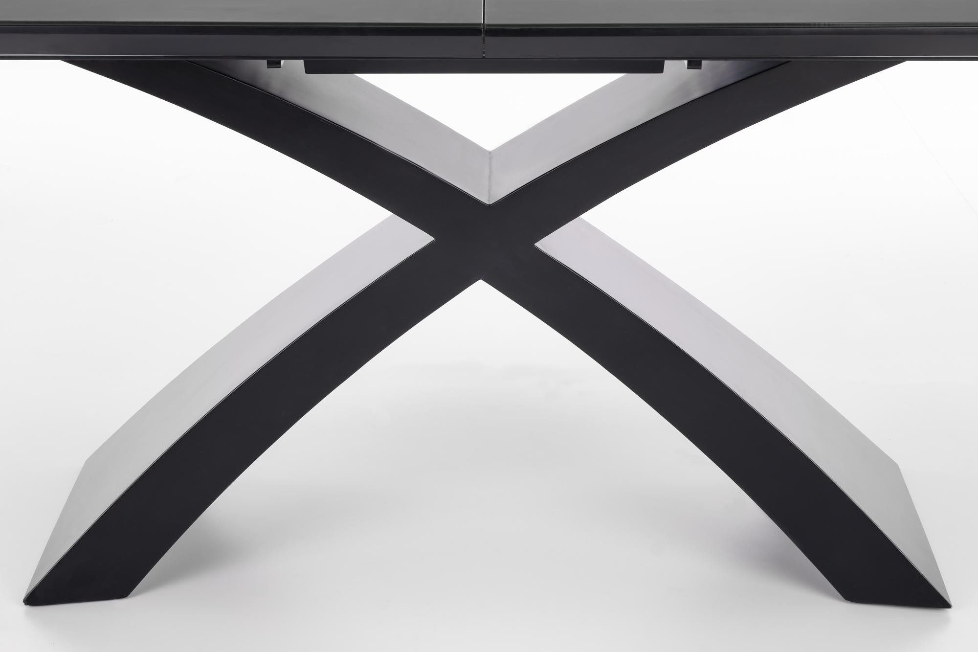размеры: 180-220/89/75 см, столик-раздвижной, материал: стекло/лакированный МДФ, цвет: столешница — темно-серый, ножки — черный
