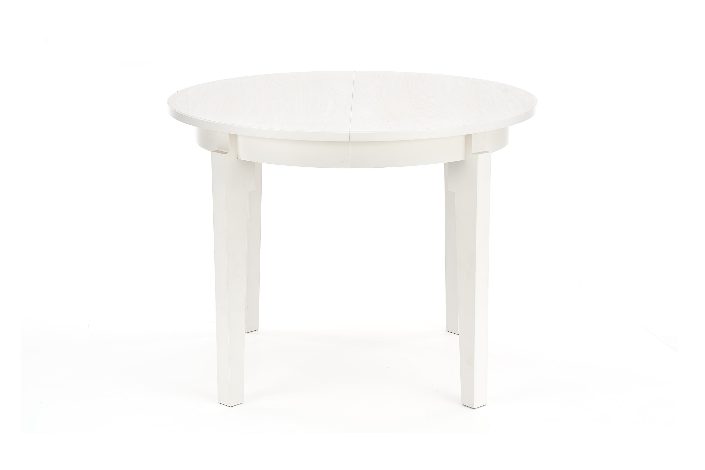 размеры: 100÷200/100/77 см, столик-раздвижной, материал: МДФ + натуральный шпон дуба/массив дерева — бук, цвет: столешница — белый, ножки — белый