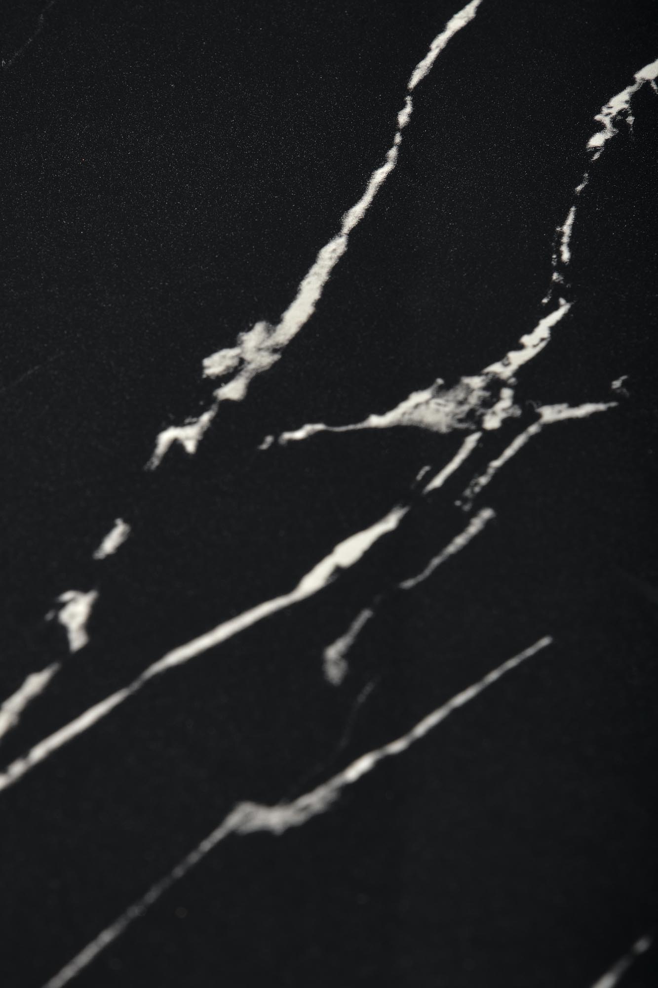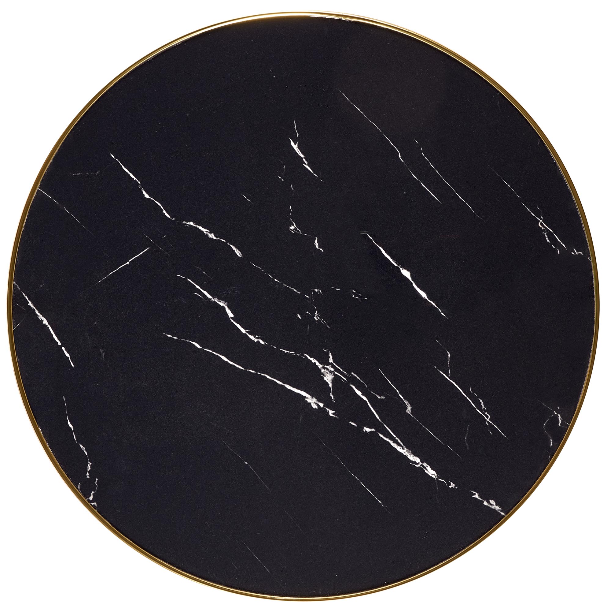размеры: фи 59/74 см, материал: ламинированный МДФ/сталь с порошковым покрытием/нержавеющая сталь, цвет: столешница – черный мрамор, ножки – черный/золото