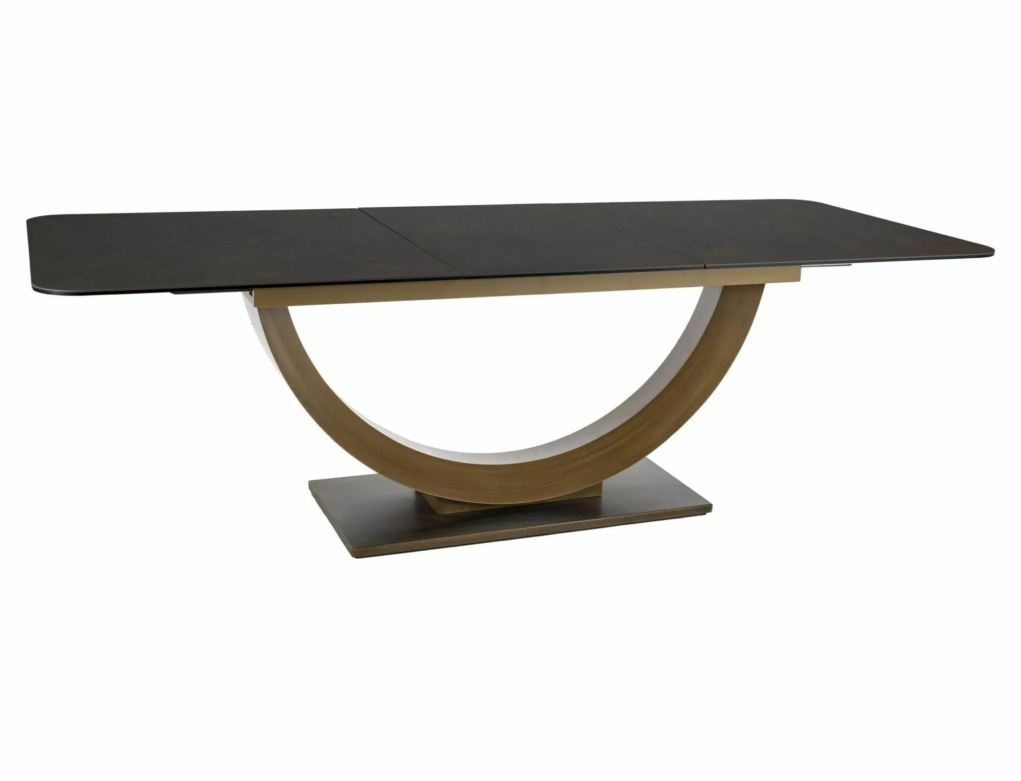 Стол раздвижной, столешница: закаленное стекло + керамика OSSIDO BRUNO, каркас: МДФ, цвет: коричневый матовый/коричневый антик.