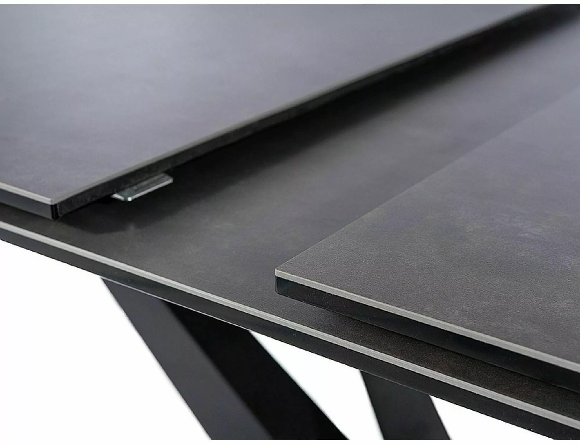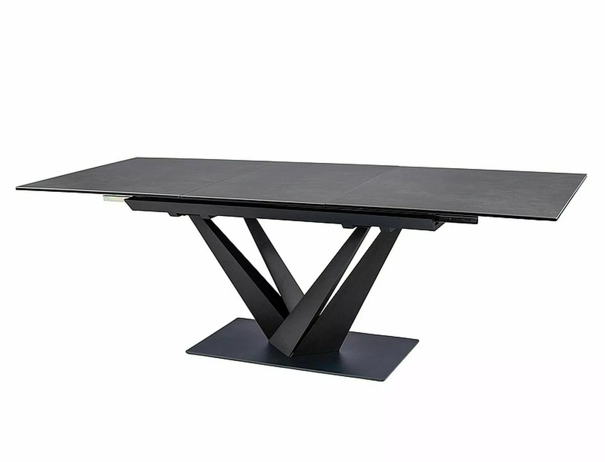 Стол раздвижной, столешница: закаленное стекло + испанская керамика, эффект мрамора, каркас: металл, цвет: темно-серый/черный матовый.