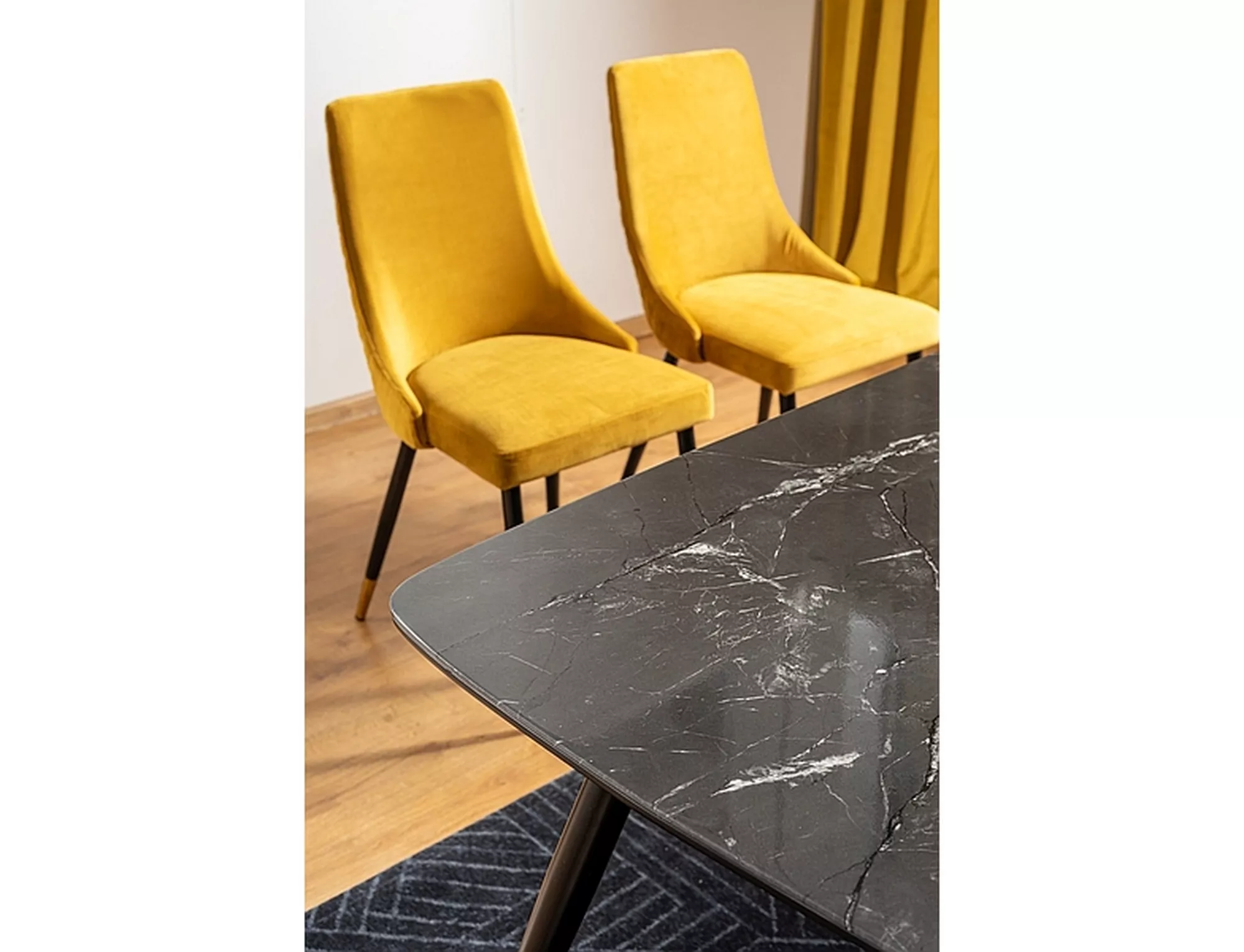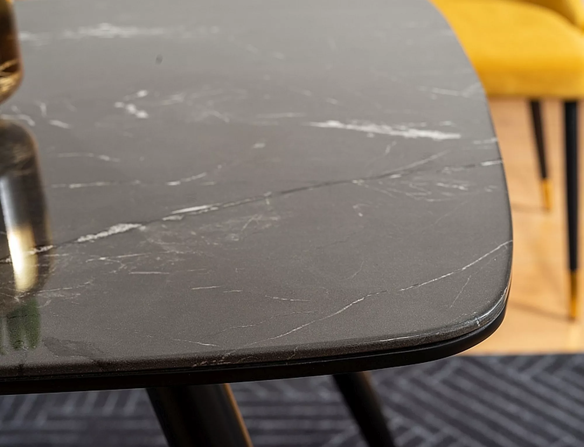 Стол, столешница: МДФ + закаленное стекло, эффект камня, каркас: металл, цвет: черный/черный + золото.