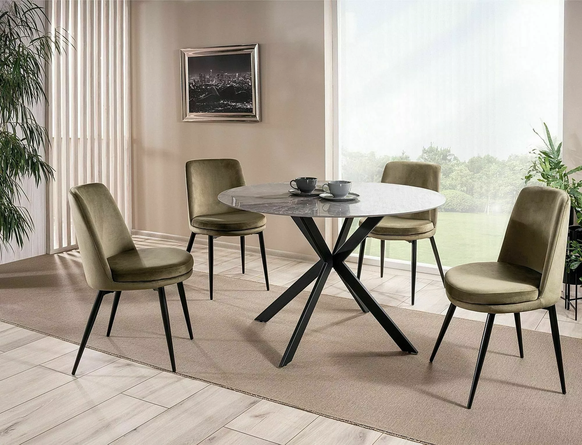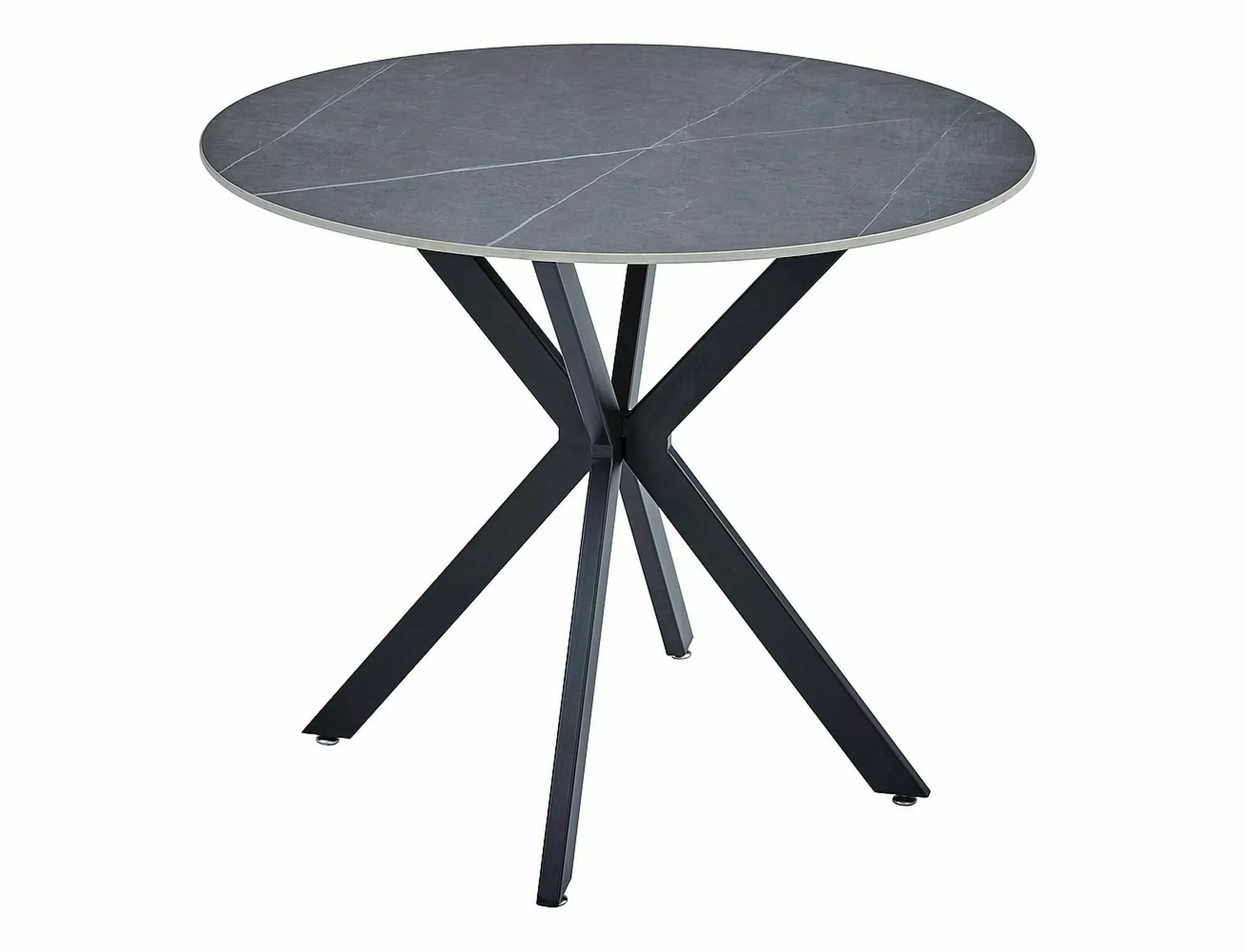 Стол, столешница: керамика, под мрамор, каркас: металл, цвета: матовый серый/матовый черный.