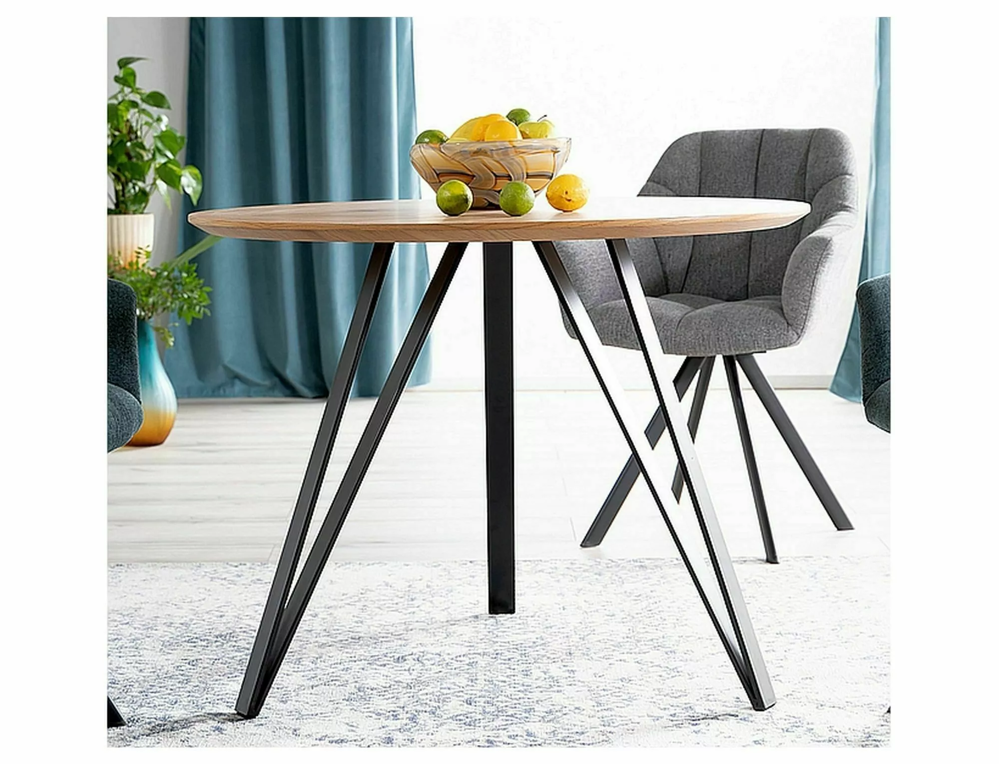 Стол, столешница: МДФ + шпон, каркас: металл, цвет: дуб/черный матовый.