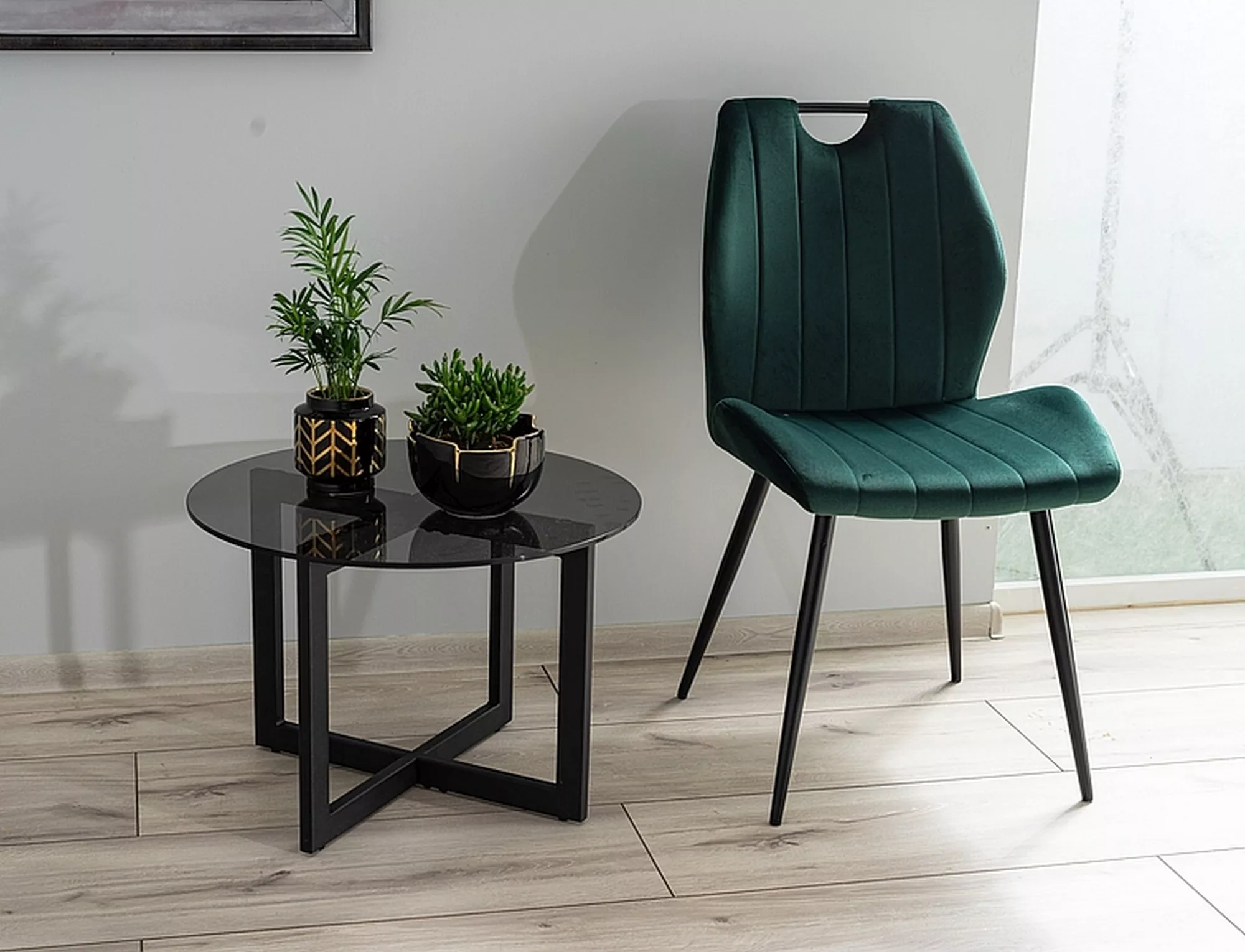 Стул, бархатная ткань: Bluvel 78 — зеленый/металл, черный матовый.