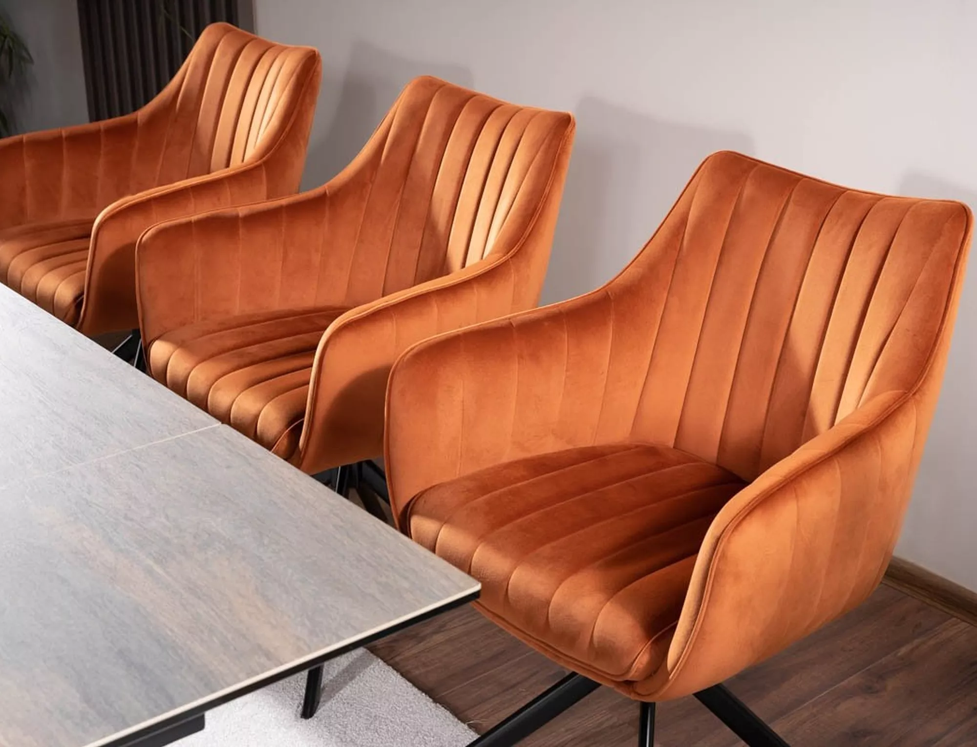 Стул, бархатная ткань: Bluvel 4215 — корица, каркас: металл, цвет: черный матовый. Сиденье вращается на 180 градусов с функцией возврата.
