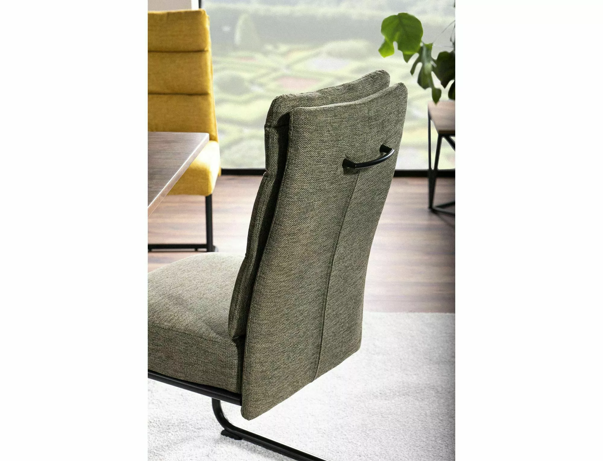 Стул, ткань Brego, цвет: оливковый 77/металл, черный матовый. На задней части спинки имеется практичная ручка, облегчающая перемещение кресла.