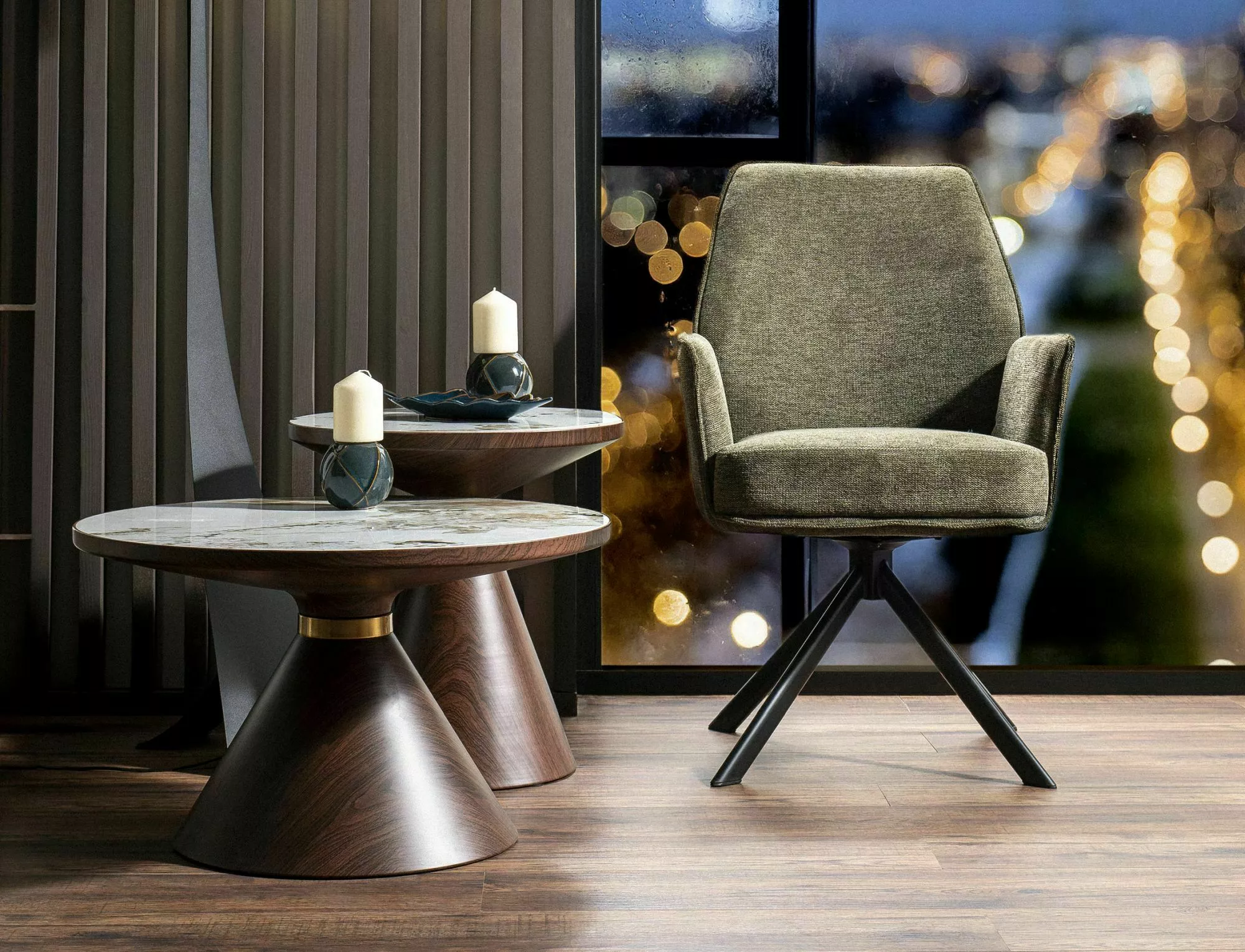 Стул, обивка: ткань Brego, каркас: металл, цвет: 77 оливковый/черный матовый. Функция автовозврата – сиденье поворачивается на 180 градусов, с функцией возврата в исходное положение. Карманные пружины в сиденье.