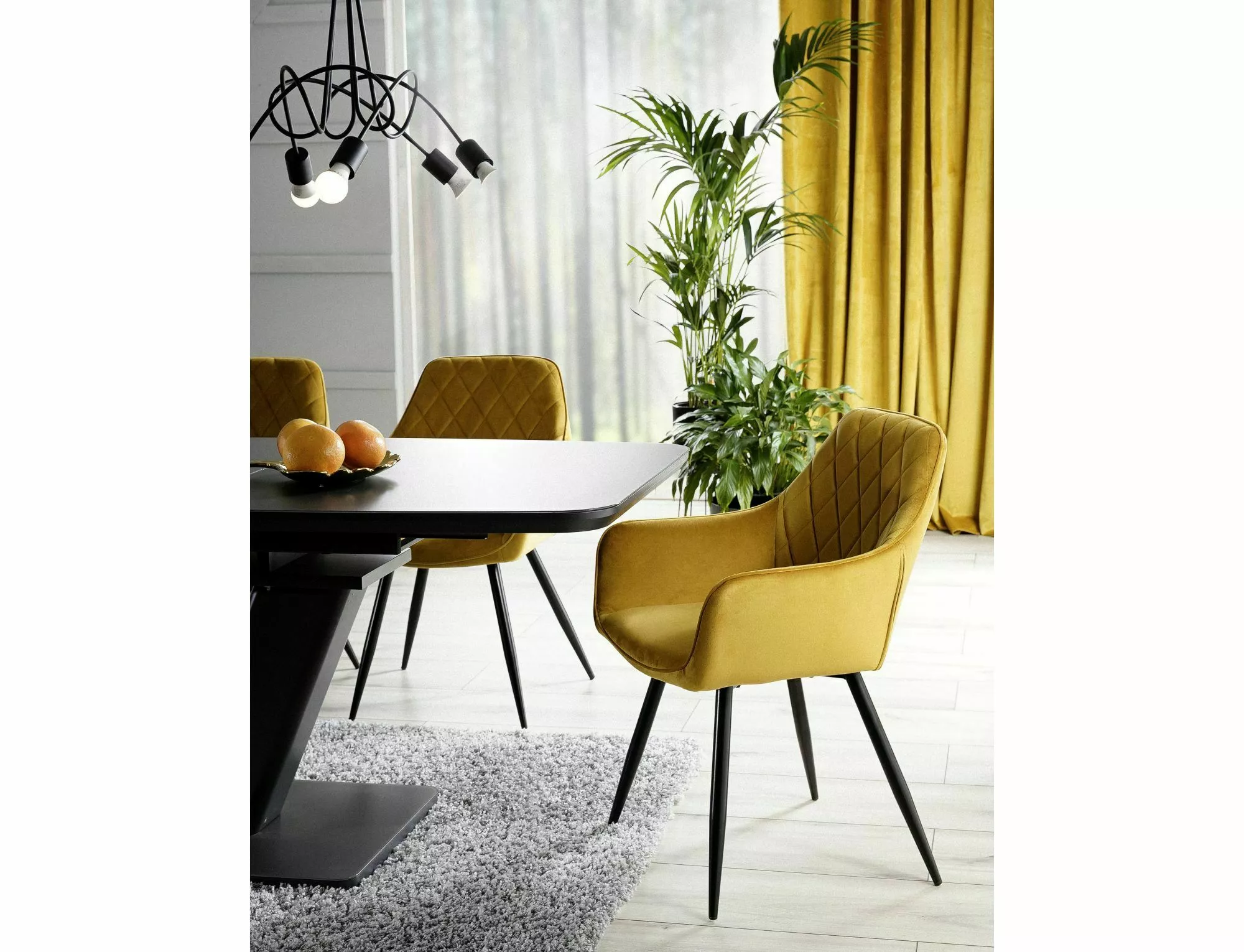 Стул, бархатная ткань: Bluvel 68 — карри, каркас: металл, цвет: черный матовый.