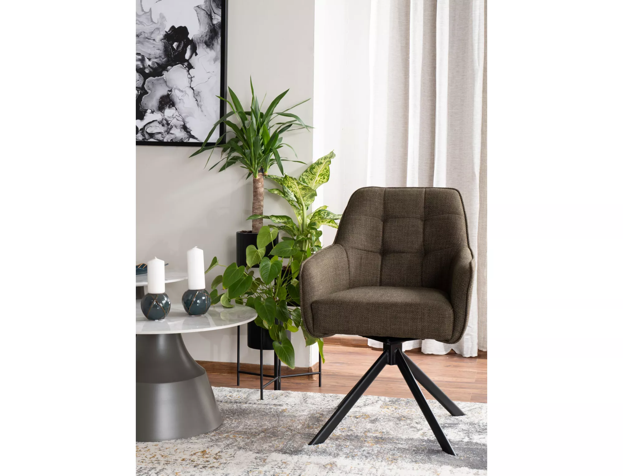 Стул, обивка: ткань Bjorn, каркас: металл, цвет: 77 оливковый/черный матовый. Функция автовозврата – сиденье поворачивается на 180 градусов, с функцией возврата в исходное положение. Карманные пружины в сиденье.