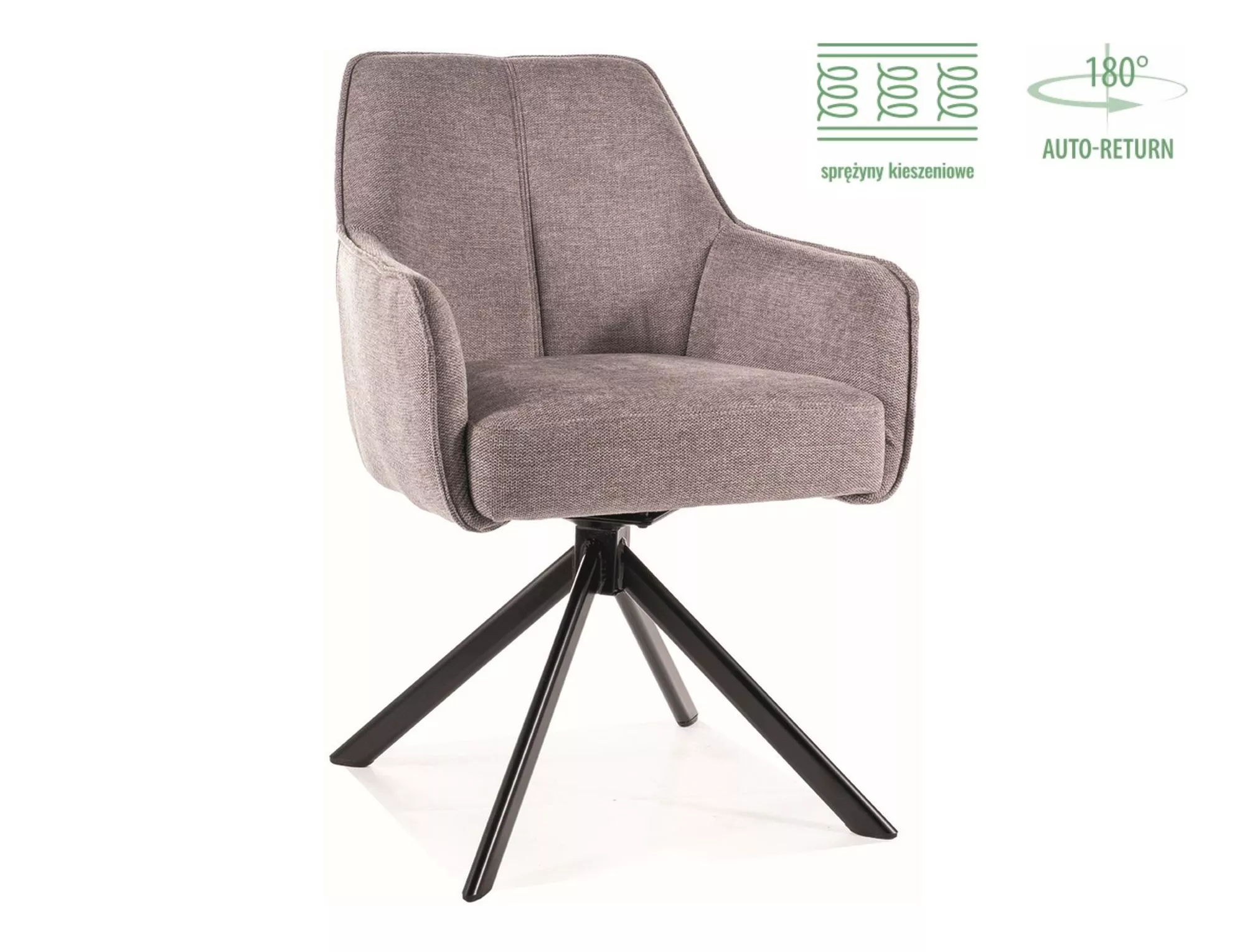 Стул, ткань Brego, цвет: серый 07, каркас: металл, черный матовый. Сиденье вращается на 180 градусов, с функцией возврата в исходное положение. Сиденье оснащено пружинами карманного типа.