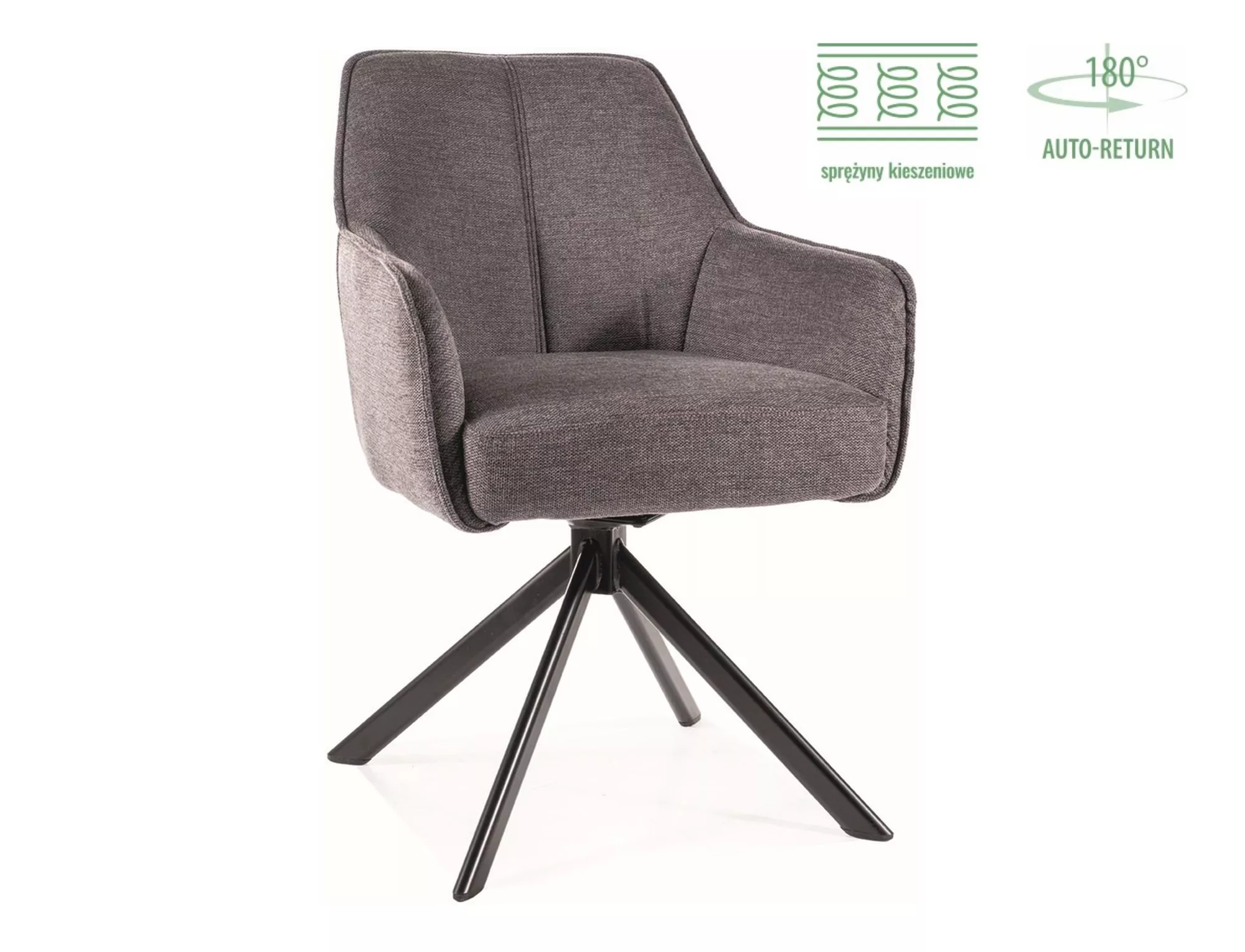 Стул, ткань Brego, цвет: темно-серый 18, каркас: металл, черный матовый. Сиденье вращается на 180 градусов, с функцией возврата в исходное положение. Сиденье оснащено пружинами карманного типа.