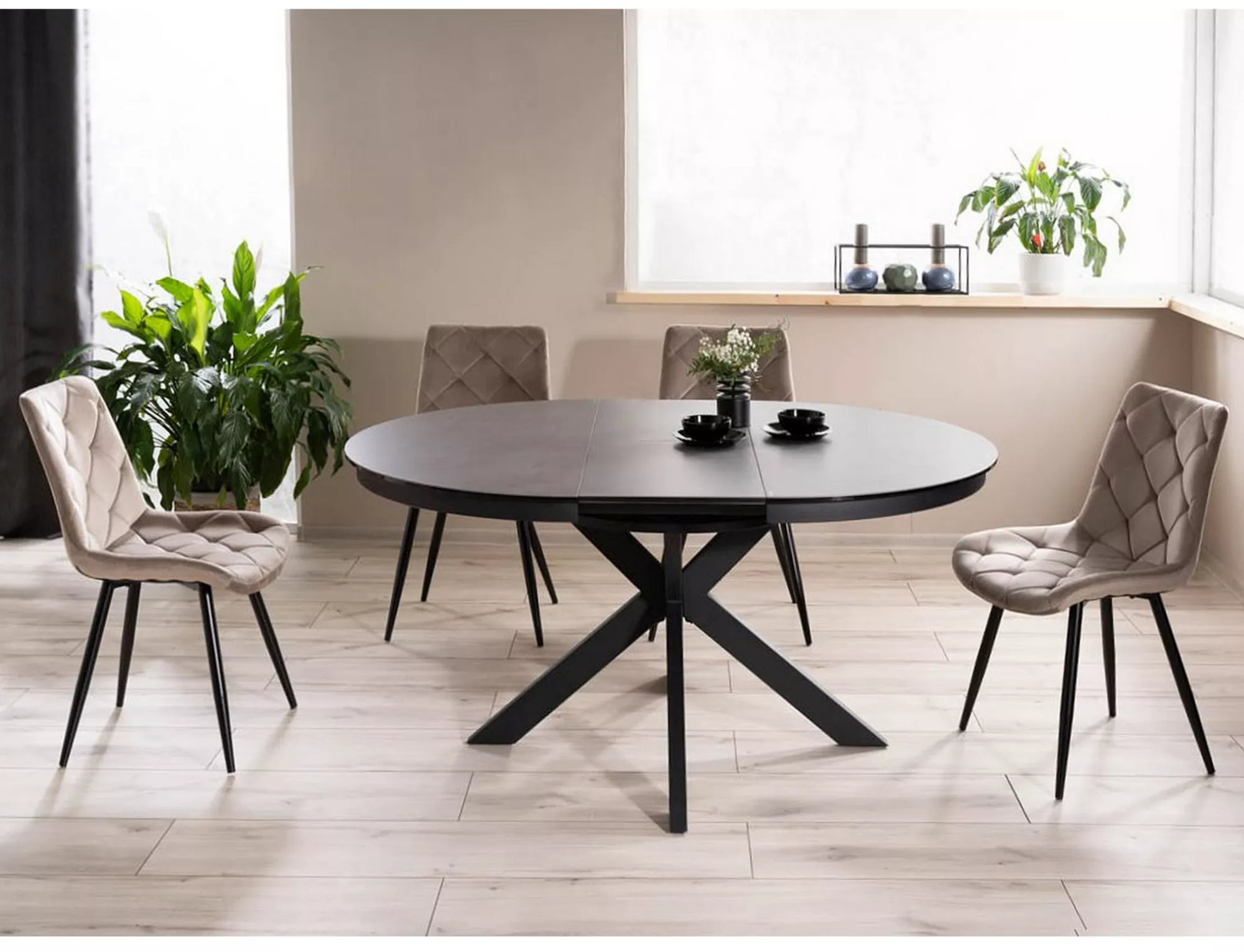 Стул, ткань Bluvel 40 — темно-бежевый, каркас: металл, цвет: черный матовый.