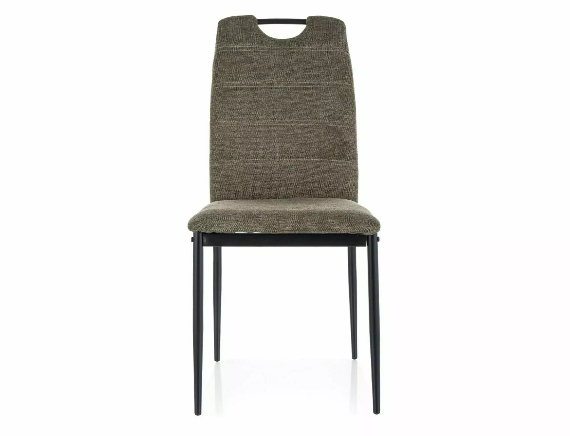 Стул, обивка: ткань Brego, каркас: металл, цвет: 77 оливковый/черный матовый. Ручка сверху спинки.