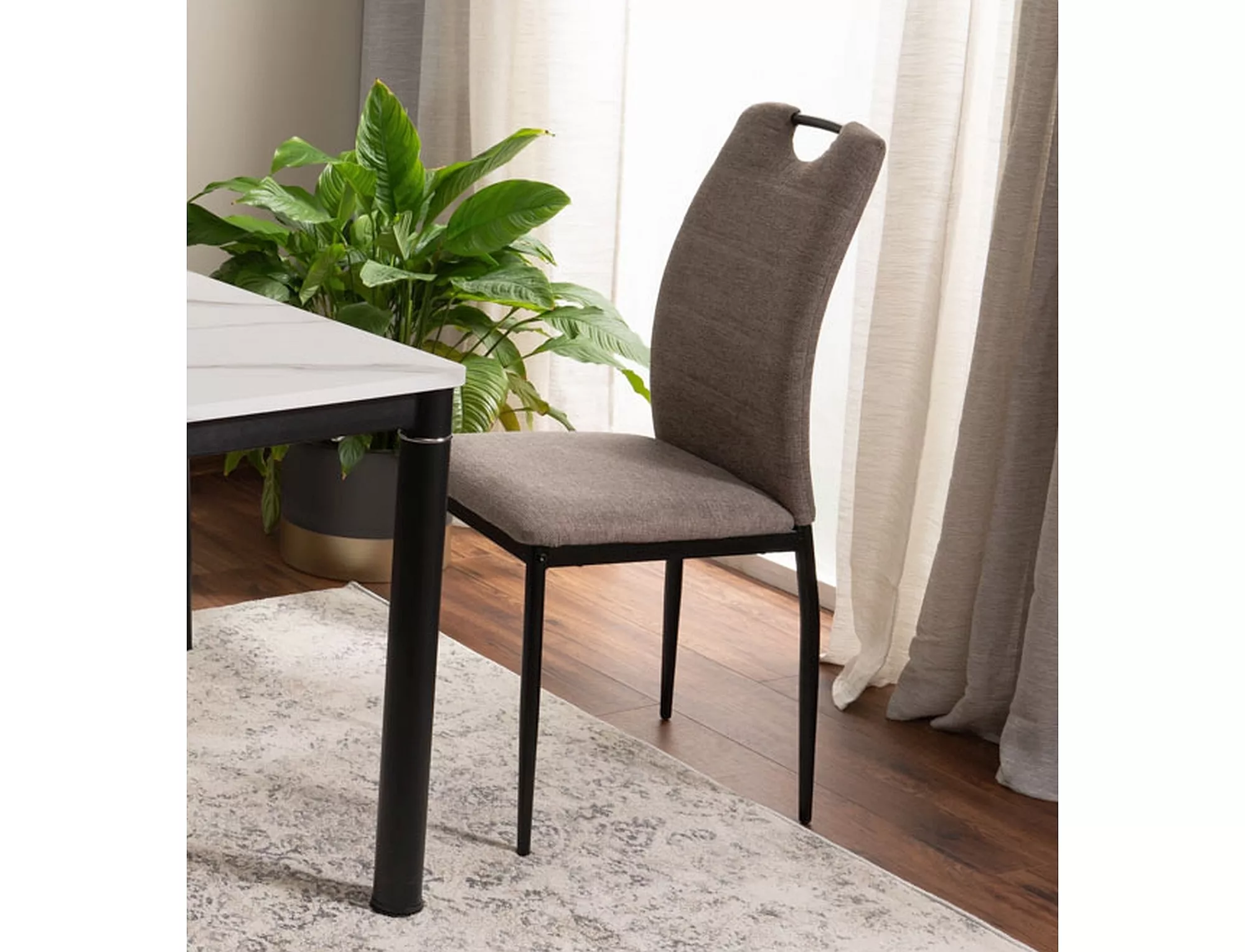 Стул, обивка: ткань Brego, каркас: металл, цвет: 34 бежевый/черный матовый. Ручка сверху спинки.