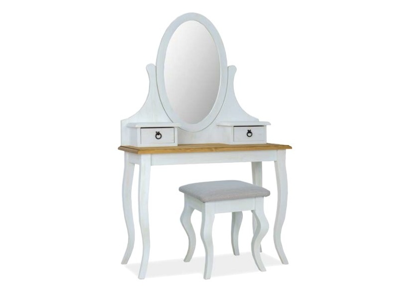 Туалетный столик с табуреткой, материал: сосна, цвет: медово-коричневый/сосна патина, регулируемое зеркало + 2 ящика, сиденье с обивкой.