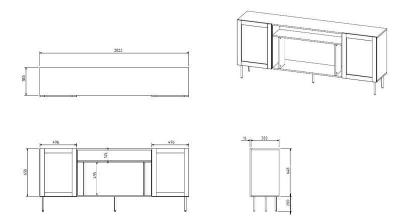 Фасад: МДФ + пленка ПП LINOL CALARBIA; каркас — плита МДФ 16 мм.