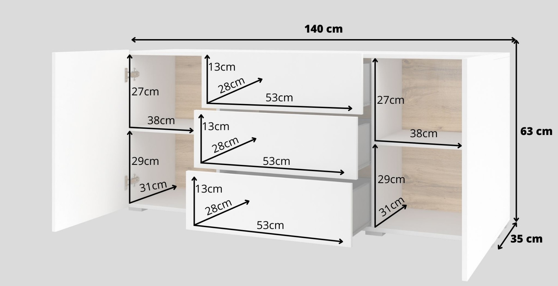 - 2 дверцы, 3 ящика