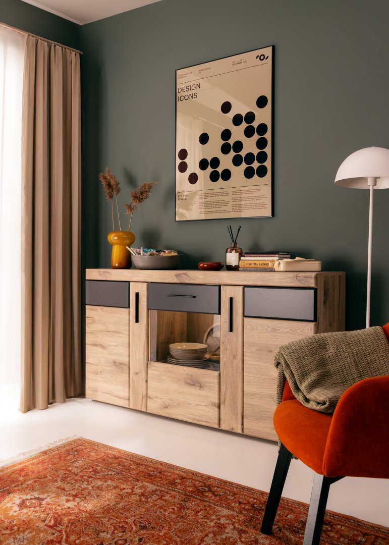 - Изготовлен из высококачественного мебельного ламината и МДФ.