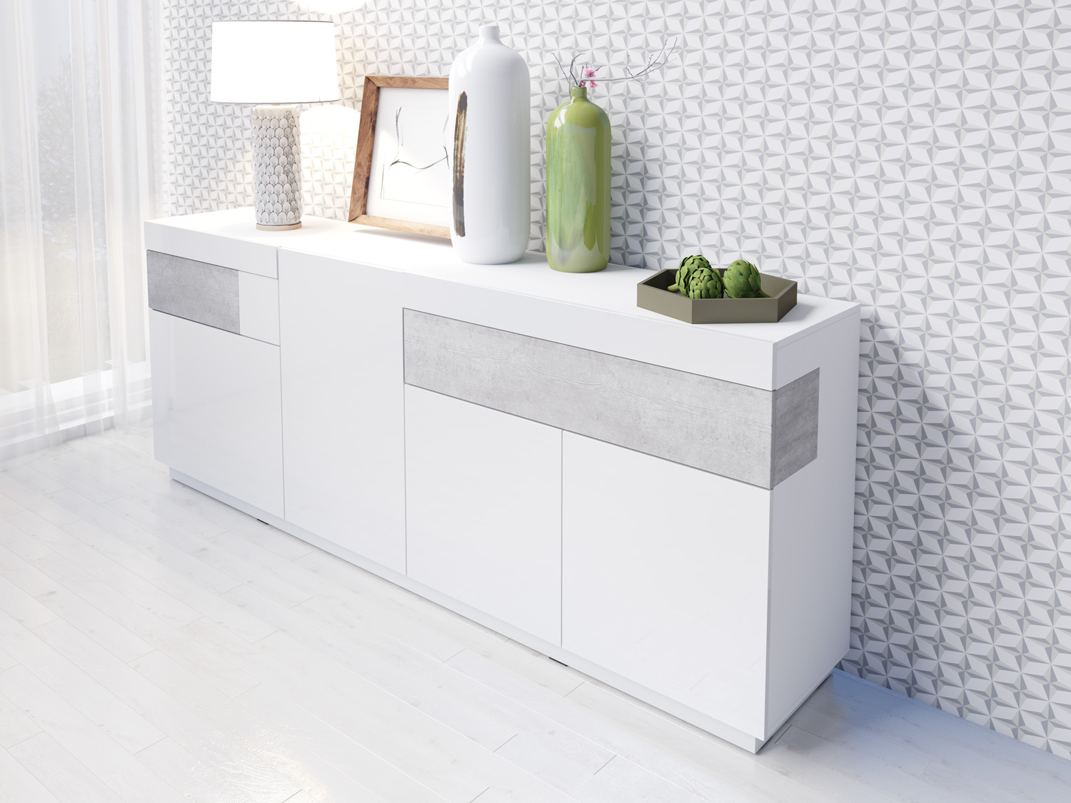 Комод SILKE 2484GY25 БЕЛЫЙ/БЕТОН 219 см