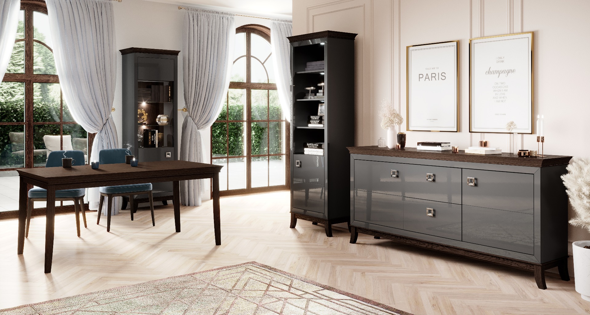 - Отделка: антрацит/антрацит глянцевый/дуб шоколадный