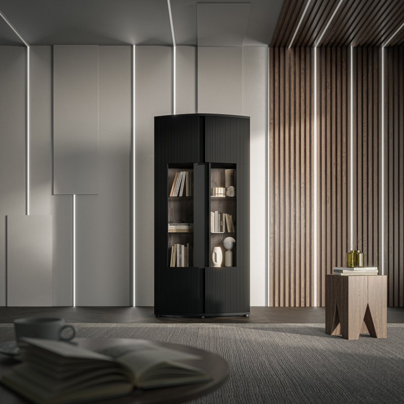 MICHELLE standing dicpaly cabinet black/ viking oak