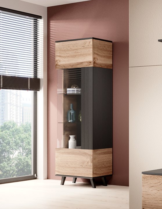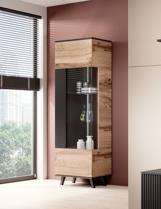 RANDOM W-1 display cabinet, color: wotan oak/black