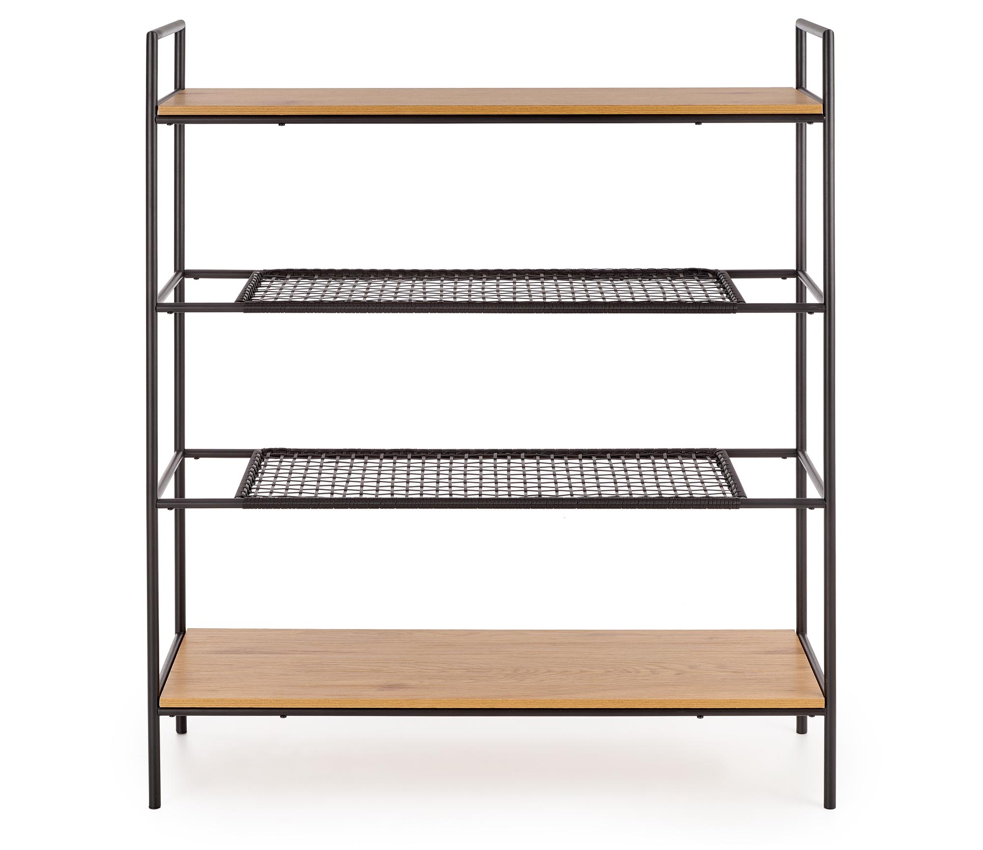 размеры: 111/34/129 см, материал: ламинированный МДФ/синтетический ротанг/сталь с порошковым покрытием, цвет: золотистый дуб/черный