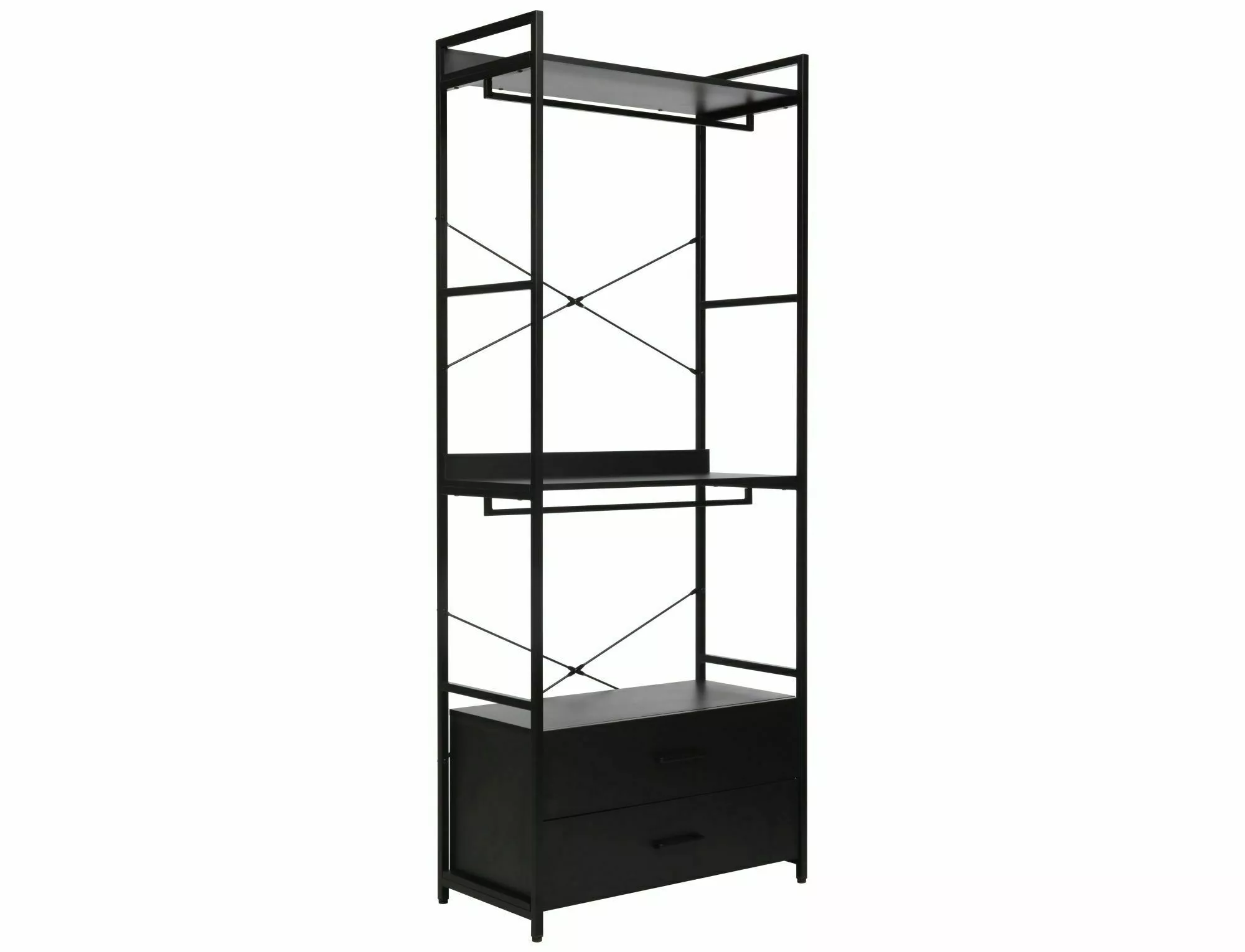 Полка/вешалка, полки: ламинат, каркас: металл, цвет: чёрный/черный матовый. Запирающийся шкаф с полкой.