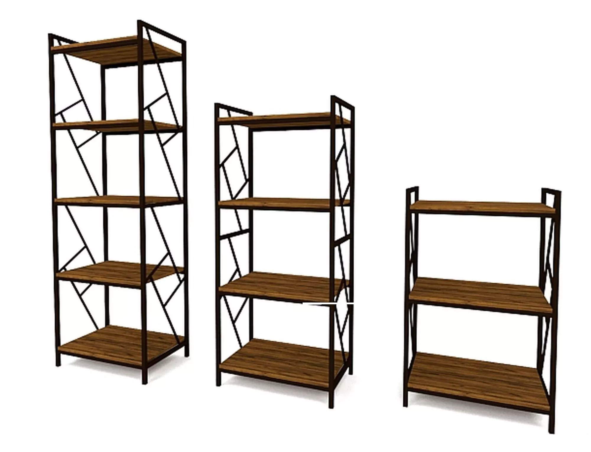 Стеллаж, полки: МДФ, цвет: дуб, каркас: металл, цвет: тёмно-коричневый.