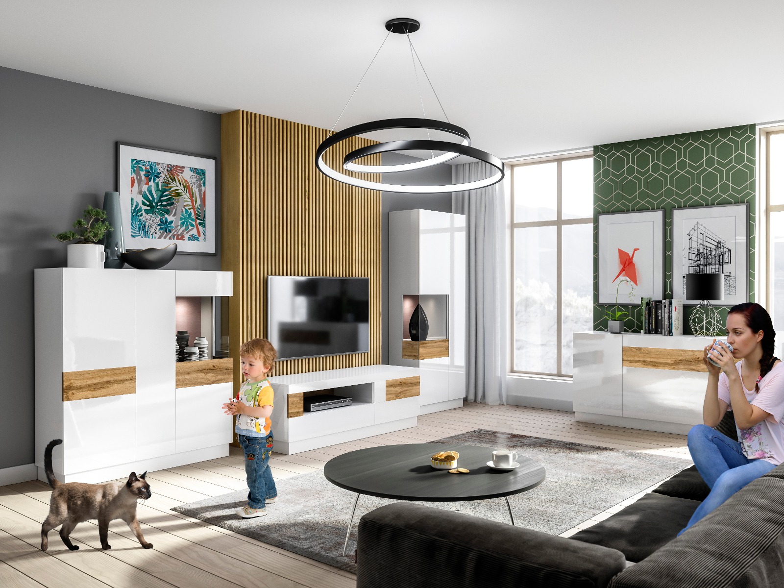 Шкаф-витрина SILKE 247JGY46 WHITE/WOTAN 130 см