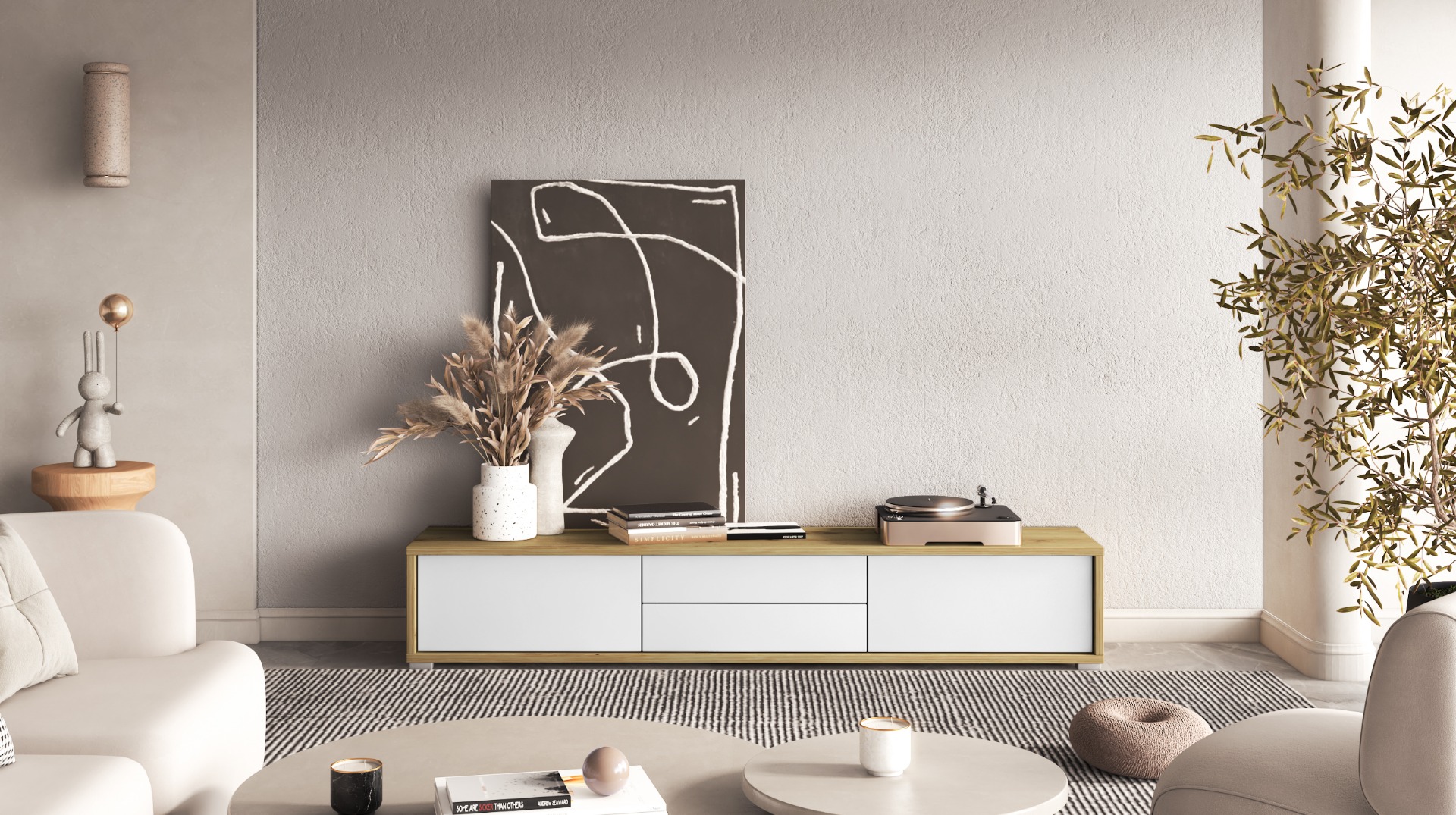 Тумба под телевизор FRIDA 180 см 249АМТ38 дуб ремесленный/белый