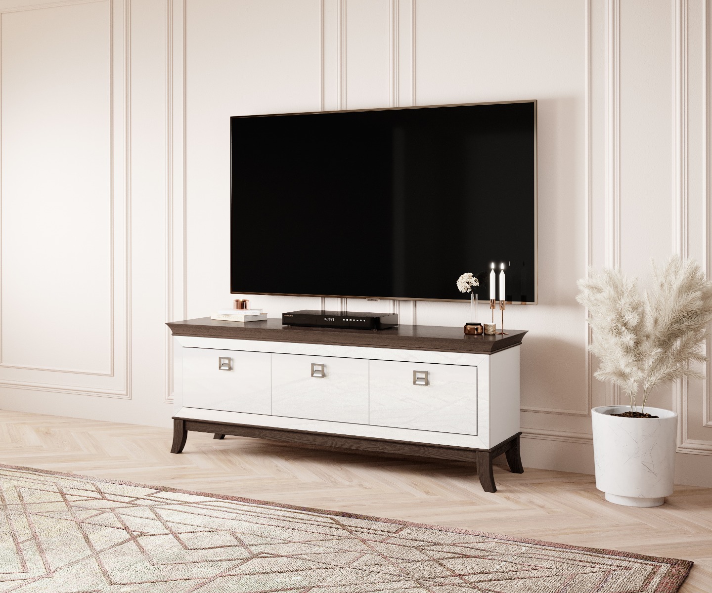 Тумба под ТВ TISARO 2473LJ39 белая глянцевая 160 см