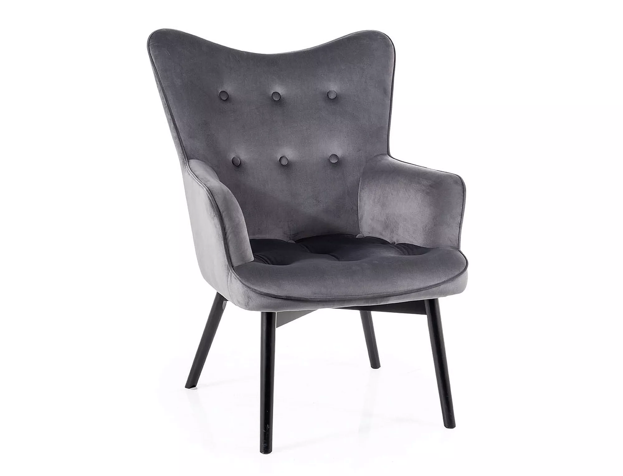 Кресло, бархатная ткань, цвет: серый Bluvel 14, дерево, цвет: черный матовый