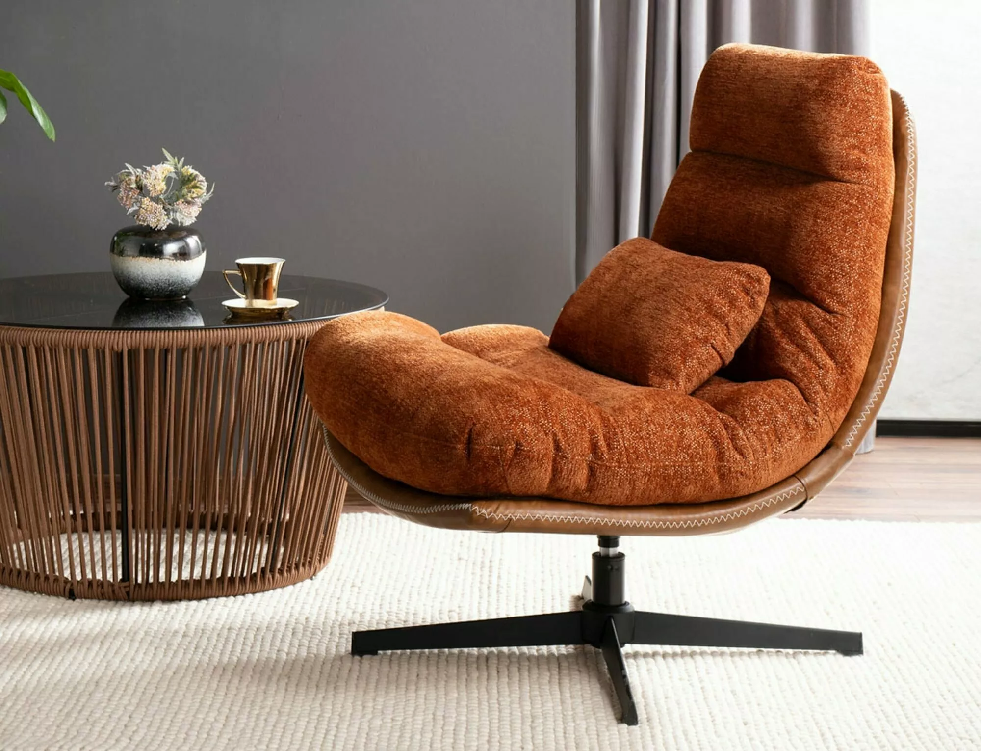 Кресло, обивка: ткань ворона, каркас: металл, цвет: корица/черный матовый.
