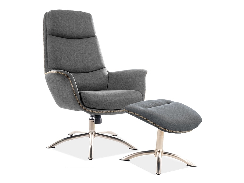 Кресло с подставкой для ног: ткань, цвет: серый, обивка 176/металл, матовая сталь, механизм НАКЛОН, без регулировки по высоте.