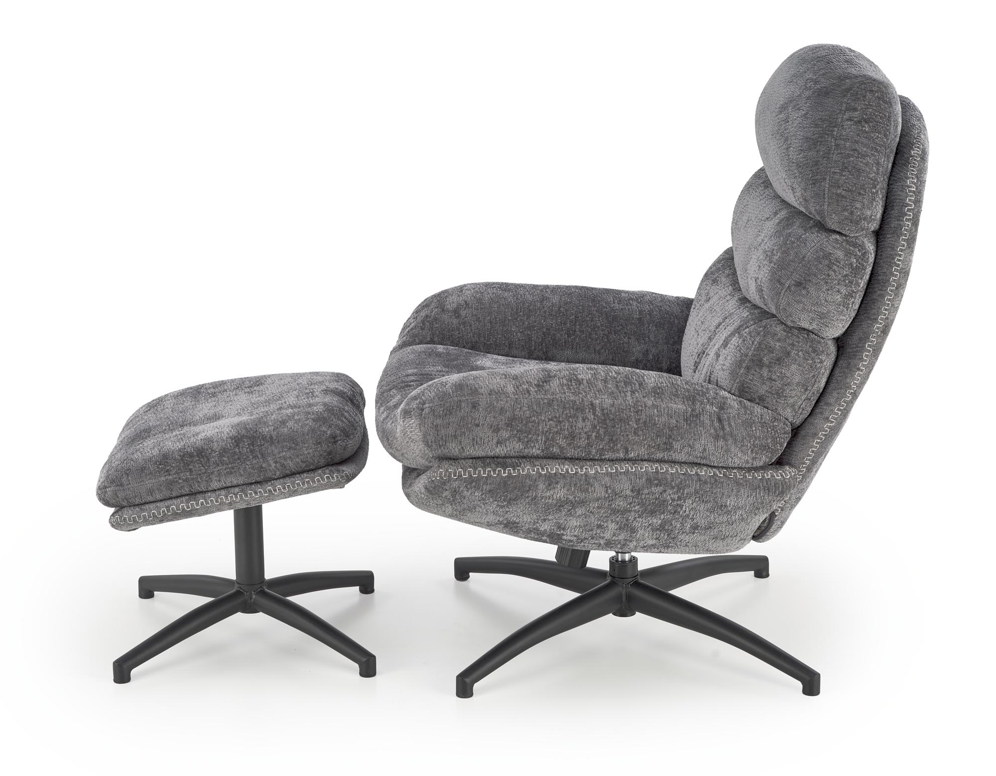 размеры: 80/90/100/45 см и 50/45/42 см; кресло с пуфиком и функцией качания, материал: ткань/сталь с порошковым покрытием, цвет серый
